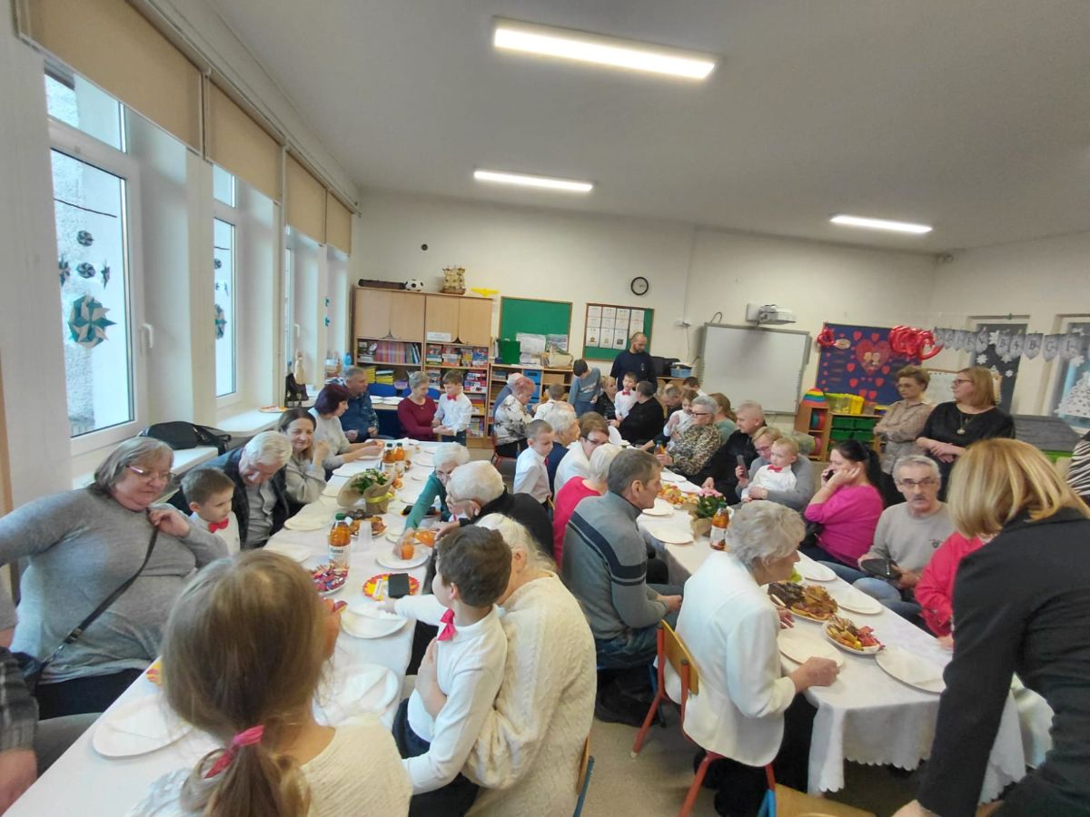 Po występach Pani Dyrektor Renata Klimowicz złożyła wszystkim Babciom i Dziadkom serdeczne życzenia oraz zaprosiła zgromadzonych gości do poszczególnych sal na poczęstunek przygotowany przez rodziców. Nie zabrakło również własnoręcznie zrobionych prezentów, które dzieci wręczyły swoim dziadkom.