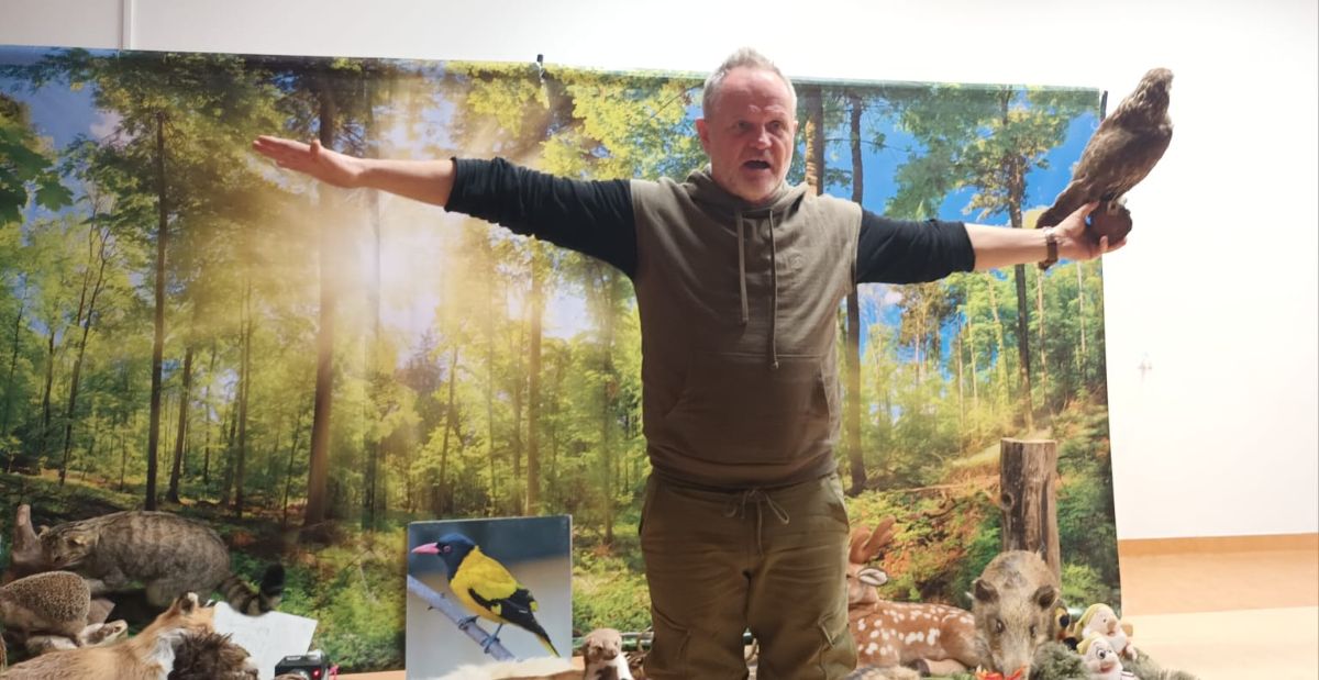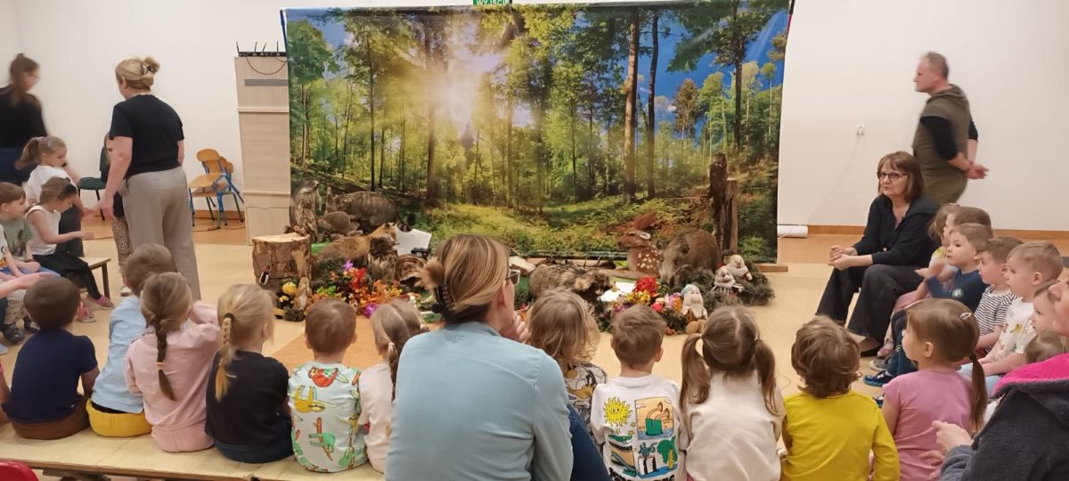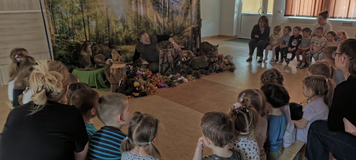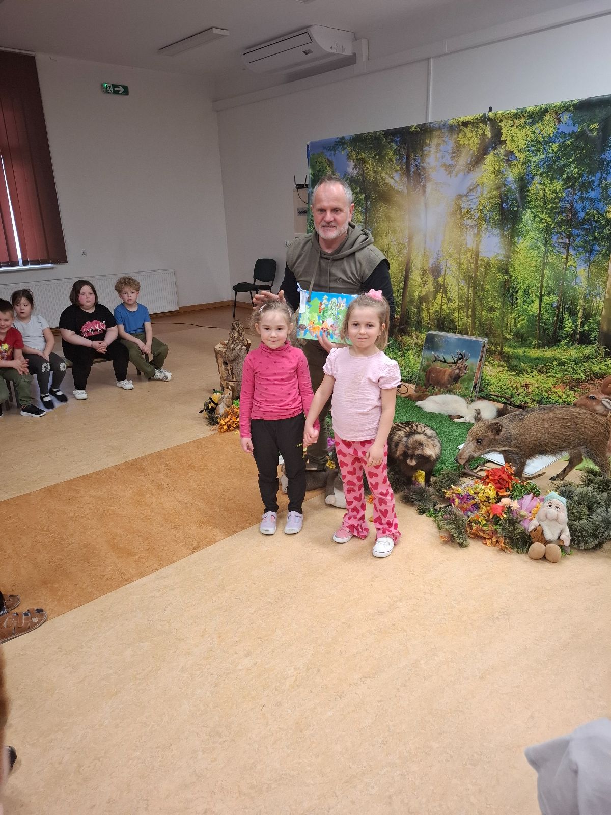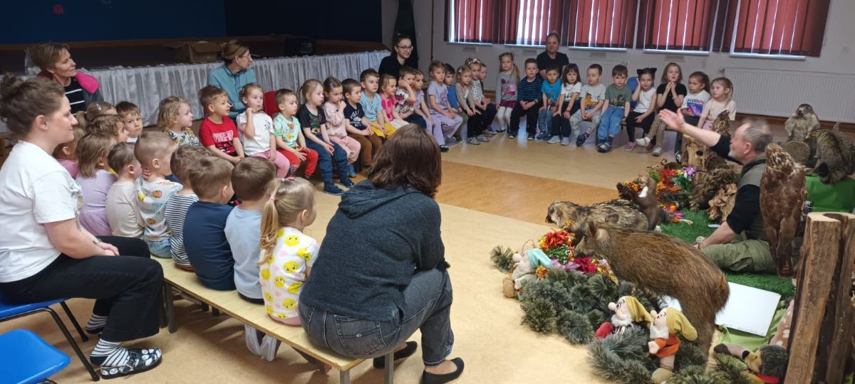 W czwartkowy poranek dzieci z naszego przedszkola uczestniczyły w warsztatach przyrodniczych „Las i jego mieszkańcy”, prowadzonych przez pana Aleksandra Rębacza – mistrza pszczelarstwa z pasieki ,,Boża Iskierka” z Męciny Małej niedaleko Krynicy Zdrój. Podczas spotkania przedszkolaki dowiedziały się, czym jest las oraz kto w nim mieszka. Poznały różne gatunki ptaków i zwierząt leśnych, a także ich zwyczaje i sposób życia. Ciekawym elementem warsztatów była możliwość dotknięcia: żbika, jenota, lisa, dzika Leosia czy jeża Tadzia. Dużym zainteresowaniem cieszyły się również odgłosy lasu, które dzieci próbowały rozpoznawać i naśladować. Na zakończenie spotkania przedszkolaki otrzymały od pana Aleksandra drobne upominki w postaci gipsowej sowy oraz papierowego mieszkańca lasu do pokolorowania i złożenia.