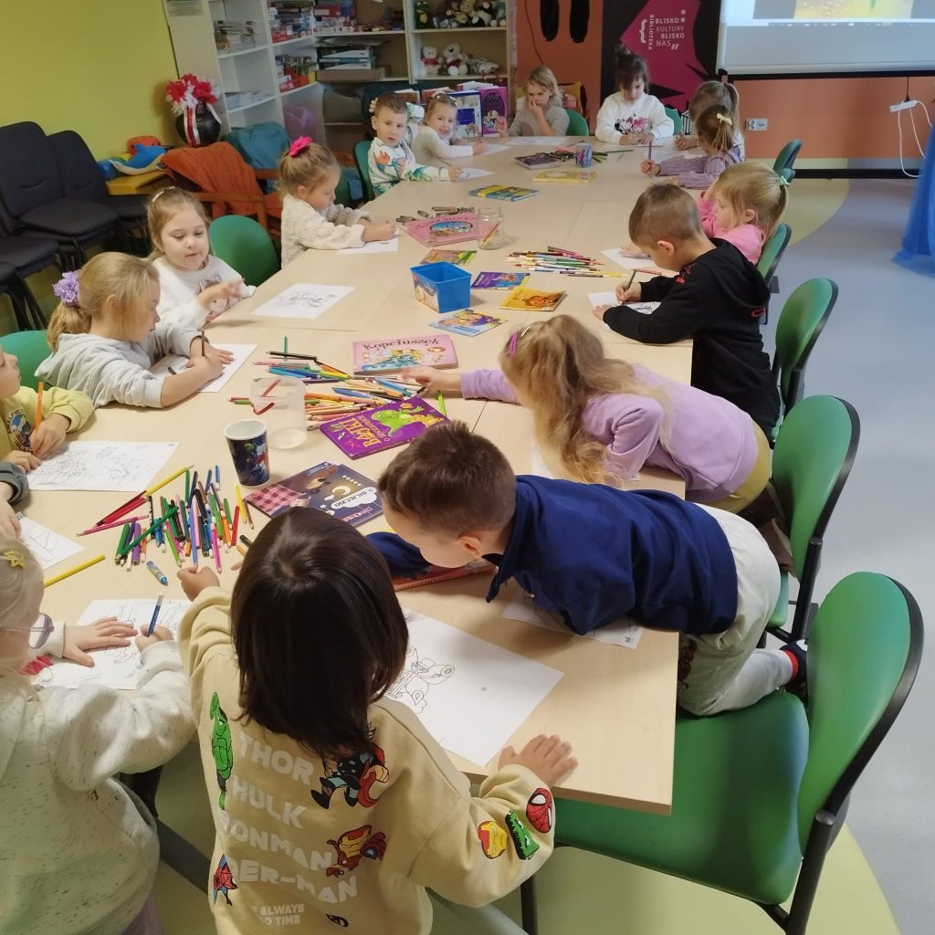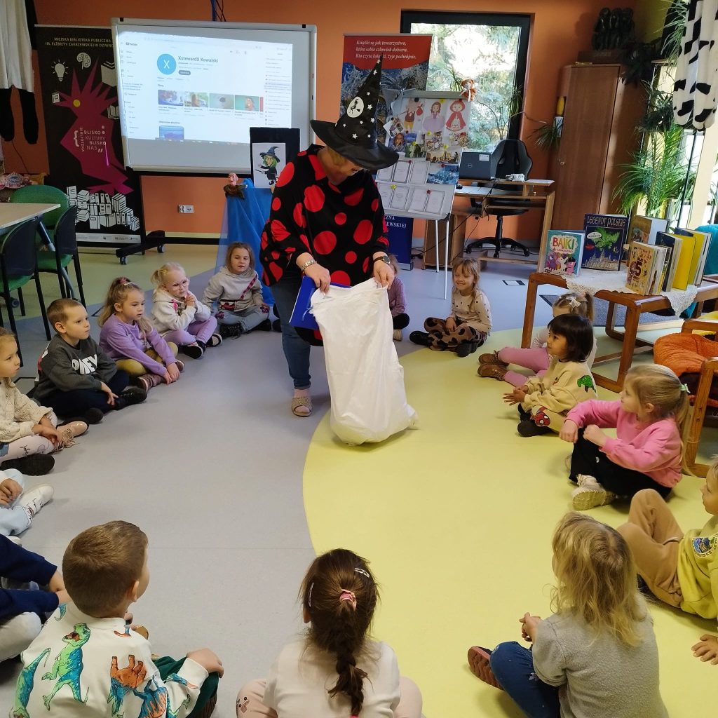 i Pani Agnieszka wprowadziły dzieci w świat fantazji i wyobraźni. Bardzo starały się „zagiąć” dzieci w wiedzy o baśniach ale nie było to dla Nich łatwe – dzieci wygrały „pojedynek”. Na koniec dzieci podziękowały Paniom i obiecały, że jeszcze wrócą.