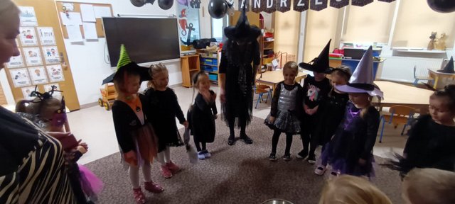W dniach 29 i 30 listopada dzieci ze wszystkich grup miały okazję poznać swoją przyszłość i uczestniczyć w niespodziankach przygotowanych przez nauczycielki z udziałem rodziców. Wszystkie dzieci przyszły do przedszkola przebrane za czarodziejki i czarodziejów oraz za postacie kojarzące się z obchodami „Andrzejek”. W trakcie zabawy nie zabrakło: ustawiania bucików, wrzucania grosików do studni życzeń, wróżby cukierkowej, warzenia eliksirów czy też rozwiązywania kalamburów, przebijania szpilką serduszek z imionami itp. Dorośli czarodzieje i wróżki zadbali o to, by dzieci mogły dowiedzieć się jaki zawód będą wykonywały w przyszłości. Okazało się, że mury naszego przedszkola opuszczą policjant, strażak, piosenkarz, piłkarz, lekarz, kierowca, górnik, żołnierz, pilot …. Dużo radości i wrażeń dostarczyło dzieciom lanie wosku przez magiczny klucz czarodzieja. Z powstałych kształtów, odczytywały czego mogą się spodziewać w przyszłości. Wróżby przeplatane były pląsami i tańcami przy muzyce. Przybyłe na spotkanie Wróżki, ku wielkiej uciesze dzieci postanowiły wyczarować z magicznego kuferka słodkie co nieco i ciasteczko z wróżbą. Nie zabrakło również zdjęć w specjalnie na ten dzień przygotowanej balonowej foto-butce.