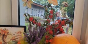 Stoją w naszych salach:szyszkowy dziadeki szyszkowa babciaw szyszkowych ubraniachi w żołędziowych kapciach. Stoją i patrzą przez szyby.Może wybierają się na grzyby? Na rydze lub borowiki,bo przecież mająz kasztanów koszyki. źródło: …