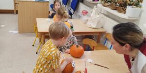 Dynie małe, dynie duże, dynie w dole, dynie w górze. Dynie z lewej, dynie z prawej, dynie kręcą się w zabawie.        Dzień dyni to jesienne wydarzenie, które obchodziliśmy …