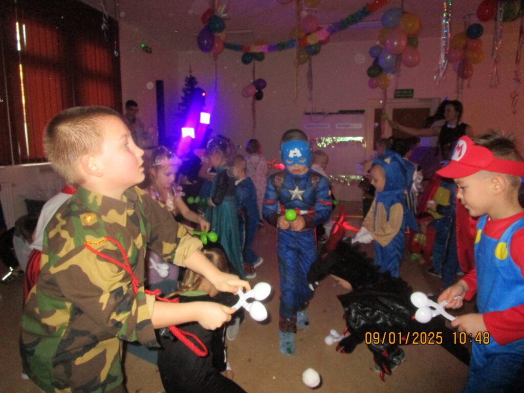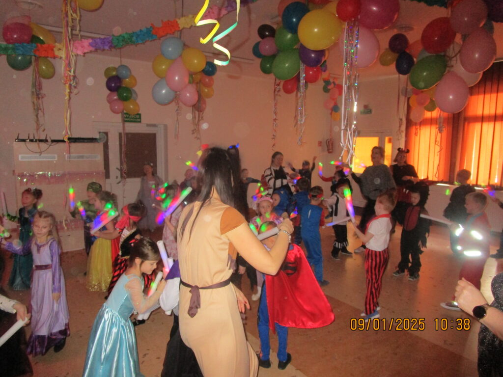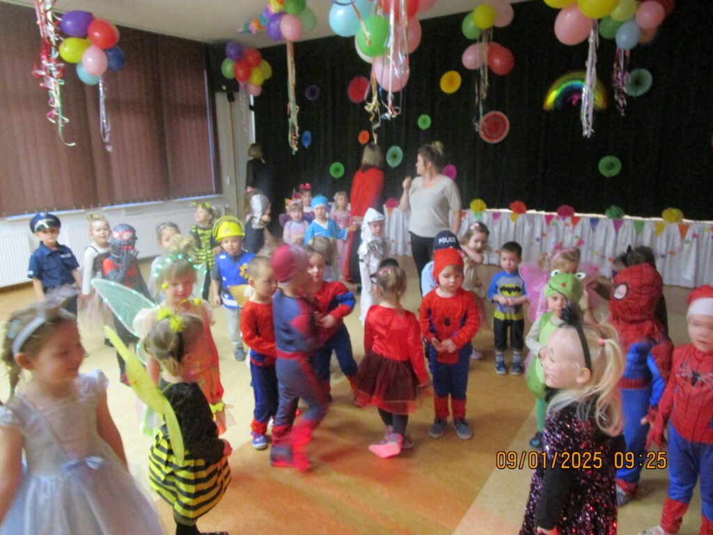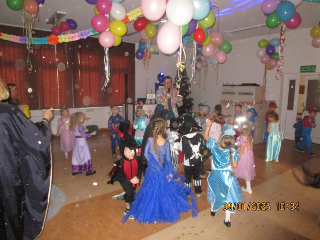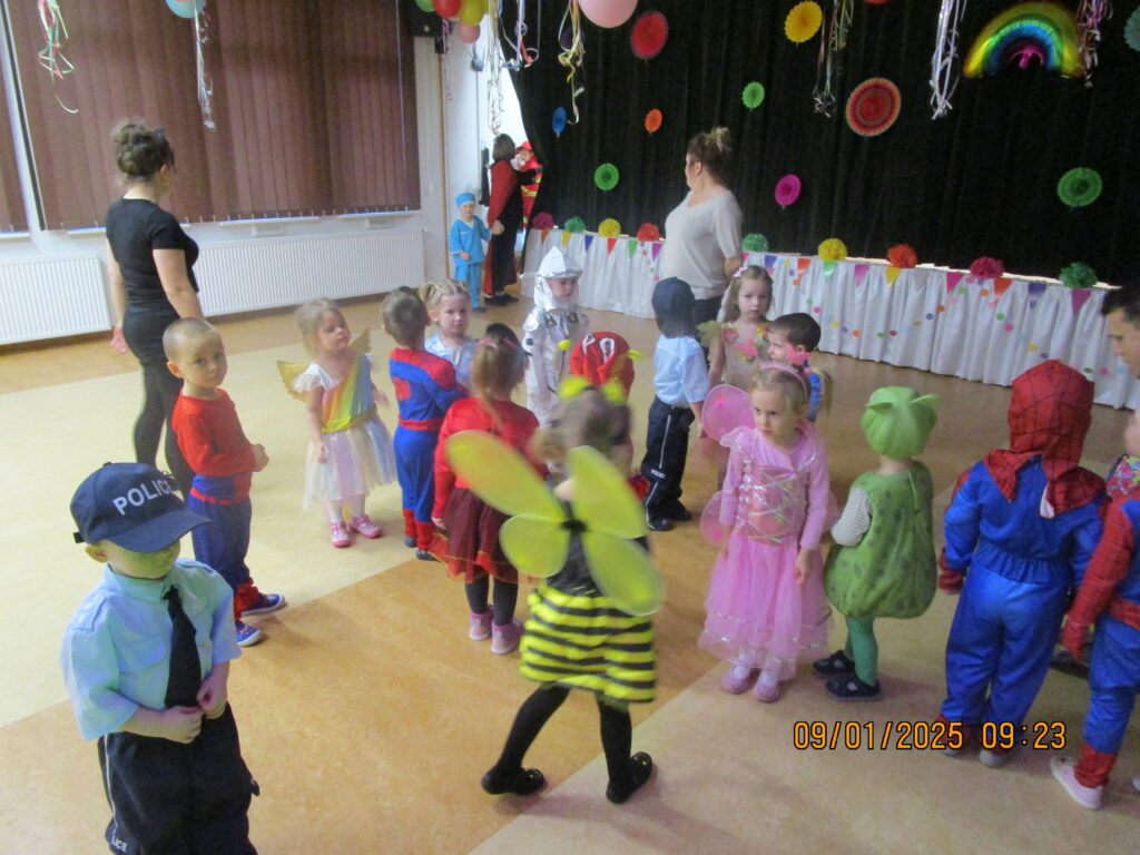 W czwartek 09 stycznia naszym przedszkolu odbył się Bal Karnawałowy. Tego dnia już od rana w przedszkolu pojawiły się kolorowe postacie. Dzieci przebrane były za bohaterów znanych bajek i nie tylko. W salach przedszkolnych można było spotkać wróżki, królewny, piratów, rycerzy, strażaków, Spider-Mena, Kapitana Amerykę, czarodziejów, Jasminę, Elzę, kowboja,… nie sposób zliczyć i wymienić tych wszystkich postaci. Rozpoznać dzieci było bardzo trudno.