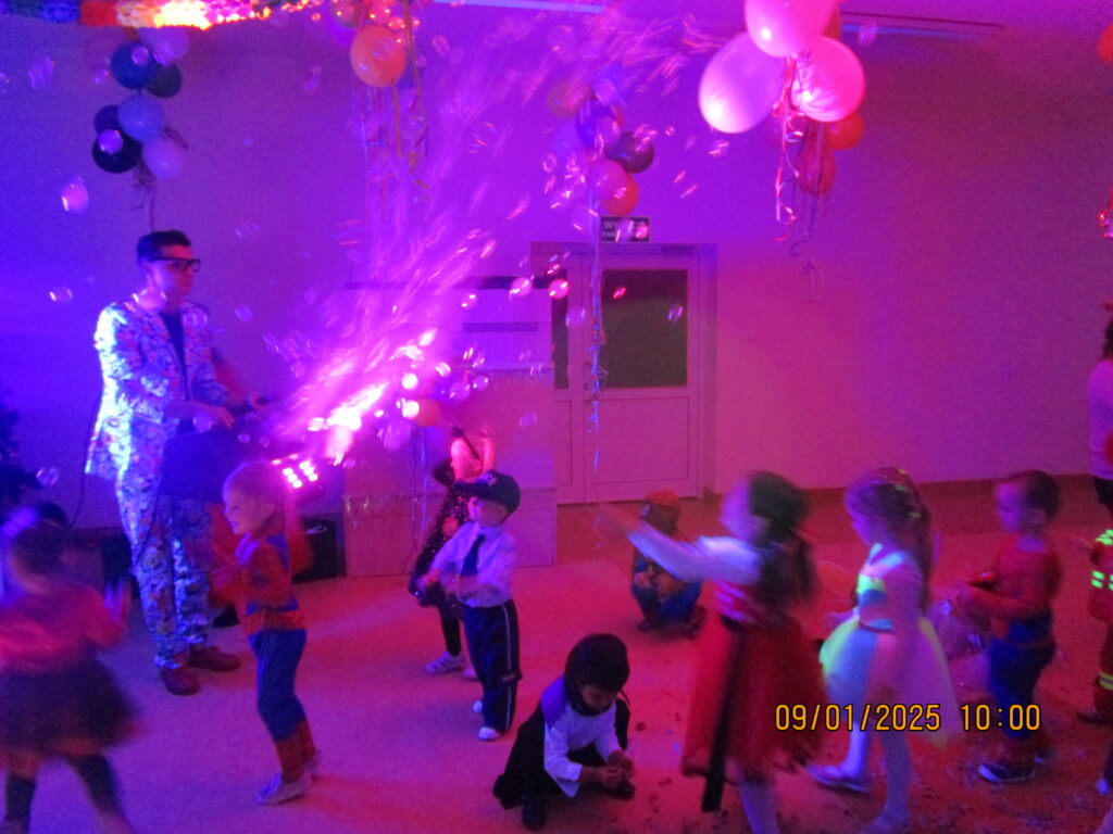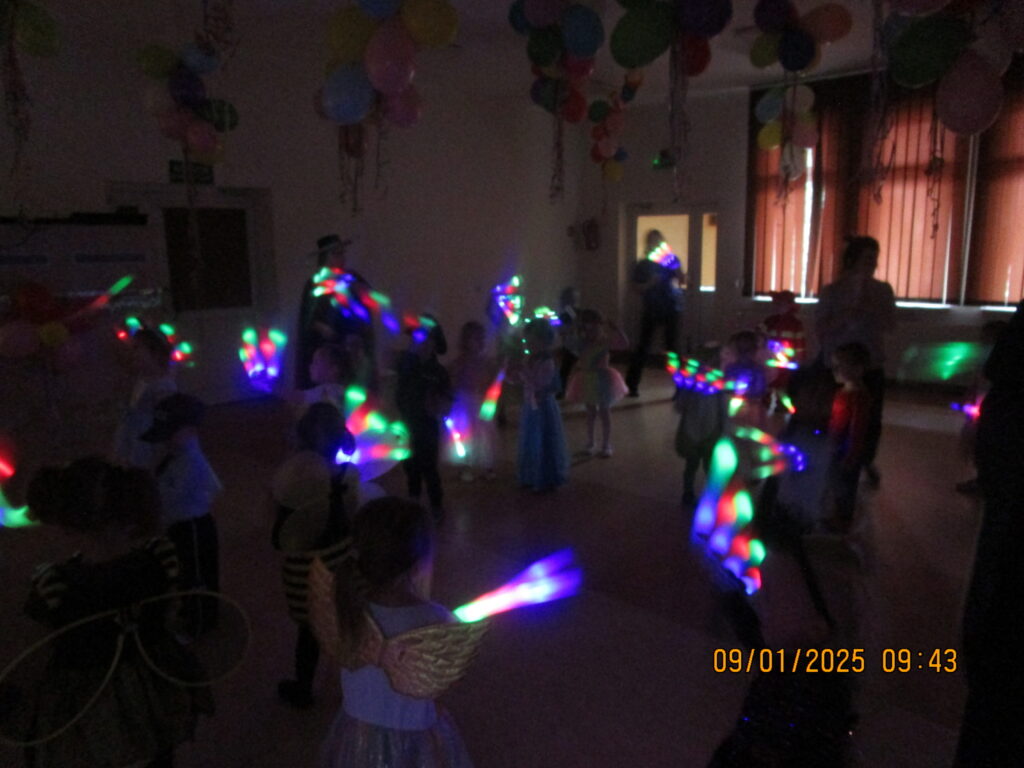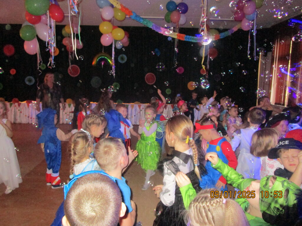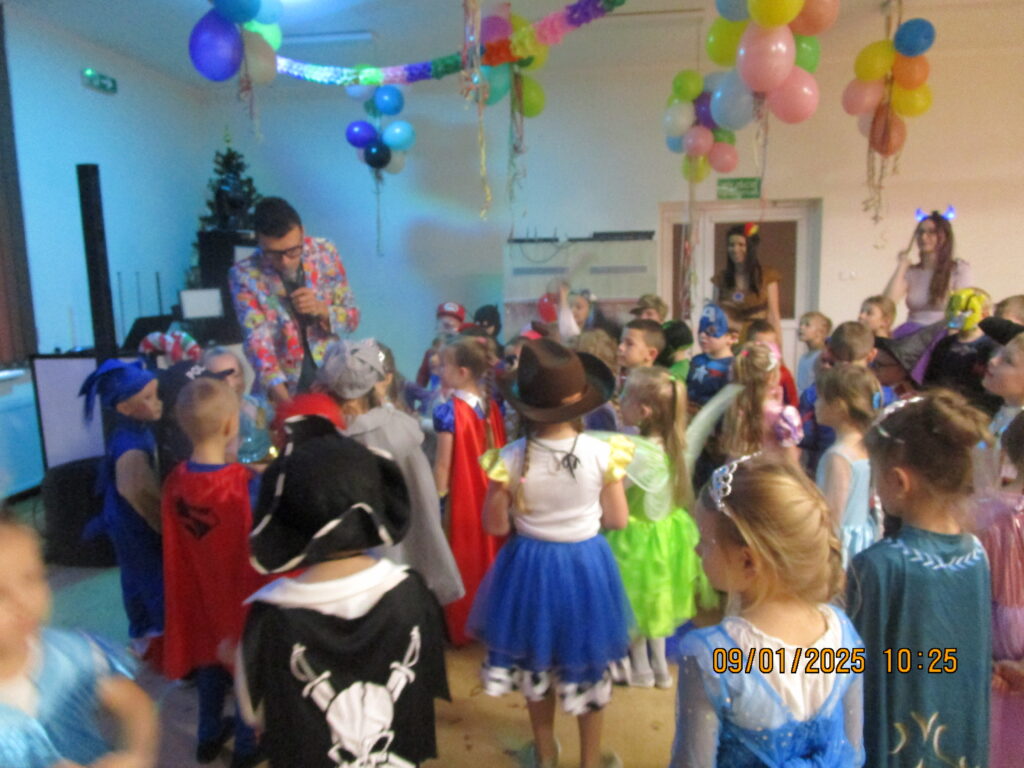 Kiedy pojawiły się pierwsze rytmy wesołej muzyki, to wszystkie przedszkolaki z wielką ochotą rozpoczęły pląsy i tańce. Wszyscy bawili się znakomicie z bardzo lubianym przez dzieci wodzirejem Loczkiem. Była cała moc atrakcji: taniec za laserowym limbo, piana party, bańki mydlane i dymne, konkurs z piłeczkami, pokaz tańca na czerwonym dywanie… jednym słowem zabawa na 102 !!! Gdy czas zabawy dobiegł końca dzieci z żalem opuszczały salę balową. Bal umożliwił dzieciom i wychowawcom spędzenie czasu w miłej atmosferze. Wspólna zabawa przyniosła wiele radości naszym wychowankom, co było głównym zamierzeniem tego balu.