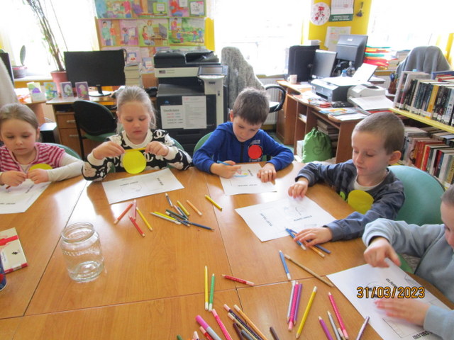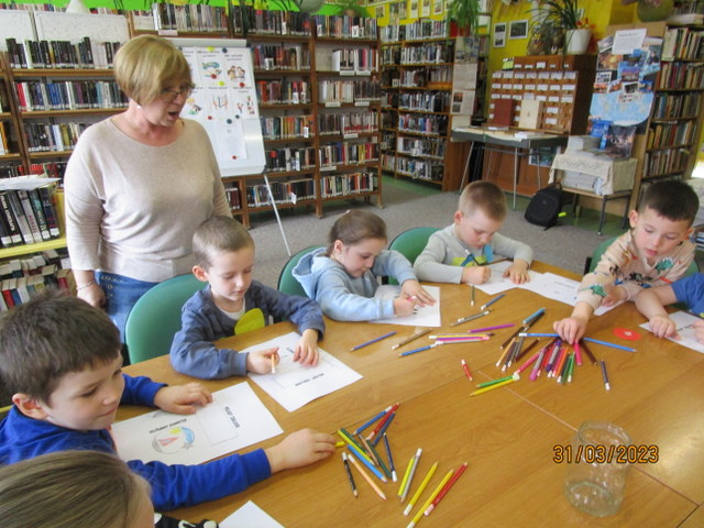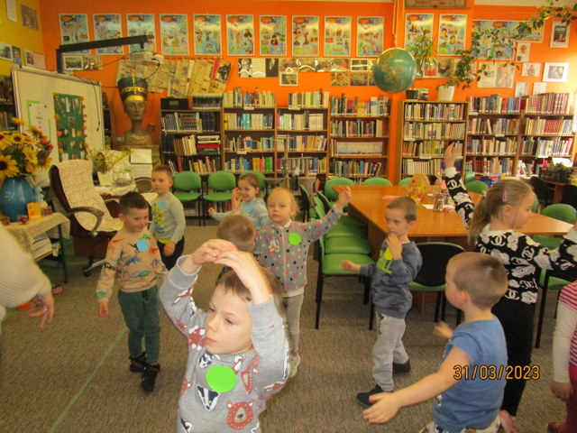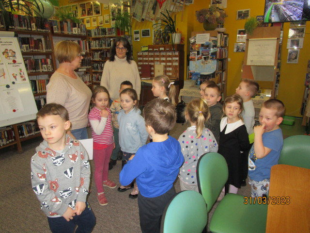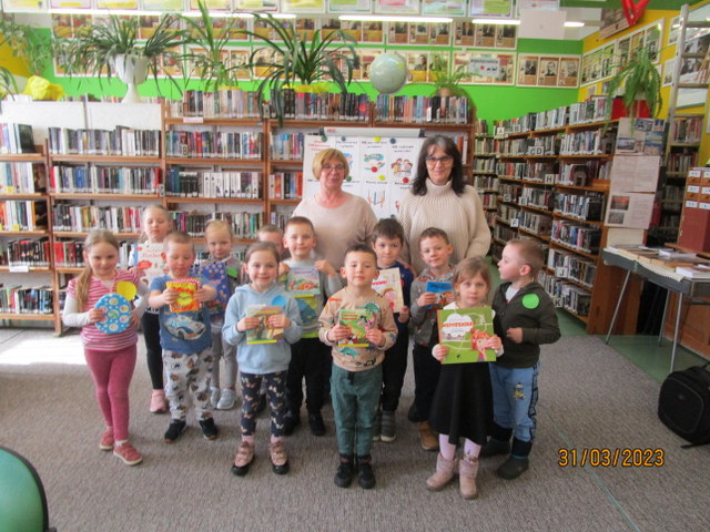 Dnia 31 marca 2023 r. grupa II – „Duszki” z wychowawczynią Katarzyną Kołakowską przy współpracy Kamili Szatanik, w nawiązaniu do obchodzonego 2 kwietnia Międzynarodowego Dnia Książki dla Dzieci, uczestniczyła w spotkaniu w bibliotece, które poprowadziła młodszy bibliotekarz Małgorzata Samsonowicz przy współpracy młodszego bibliotekarza Agnieszki Sawińskiej. Celem zajęć edukacyjnych, przeprowadzonych w oparciu o temat „Książka moim przyjacielem” było wzbudzanie zainteresowania książkami poprzez rozmowę na temat książki, jej wyglądu i budowy oraz znaczenia w naszym życiu.
