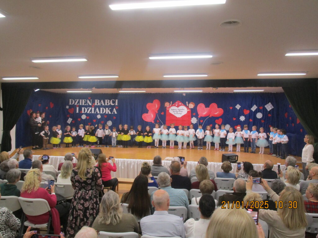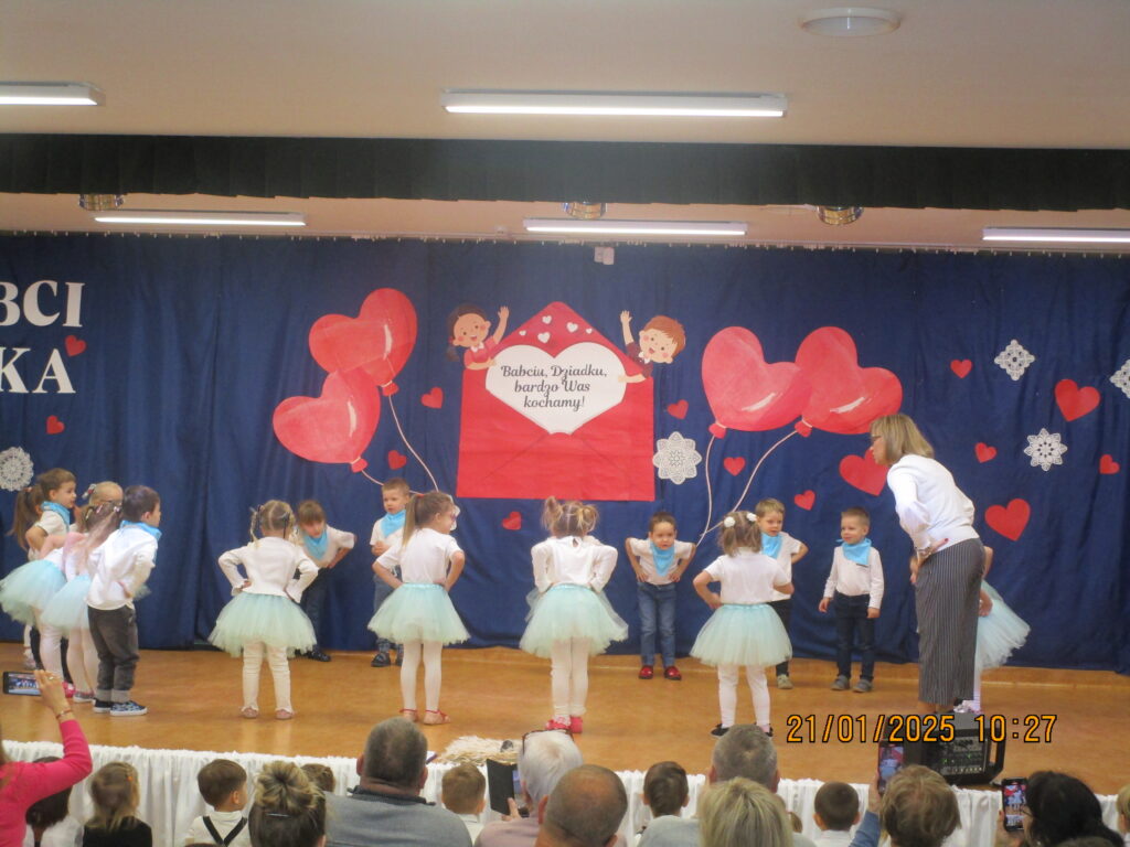 Z okazji tego dnia nasze przedszkolaki przygotowały przedstawienie. W przepięknej scenografii przedszkolaki recytowały wiersze przeplatane śpiewem i tańcem . Po występach dziadkowie zostali zaproszeni na poczęstunki do sal dzieci, które przygotowali rodzice, oczywiście nie zabrakło też własnoręcznie zrobionych upominków, które dzieci wręczyły swoim ukochanym Babciom i Dziadkom.