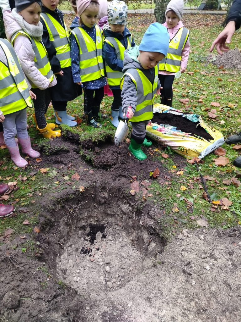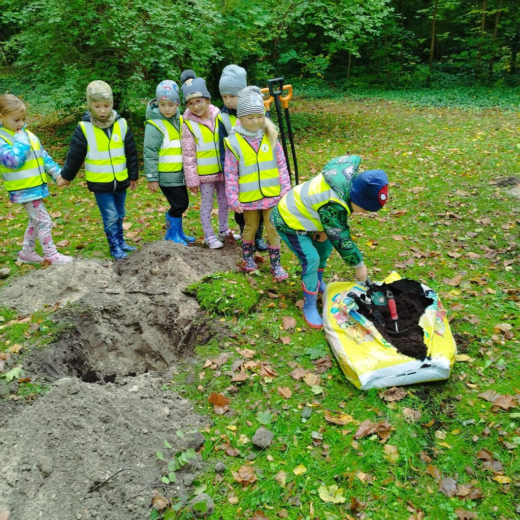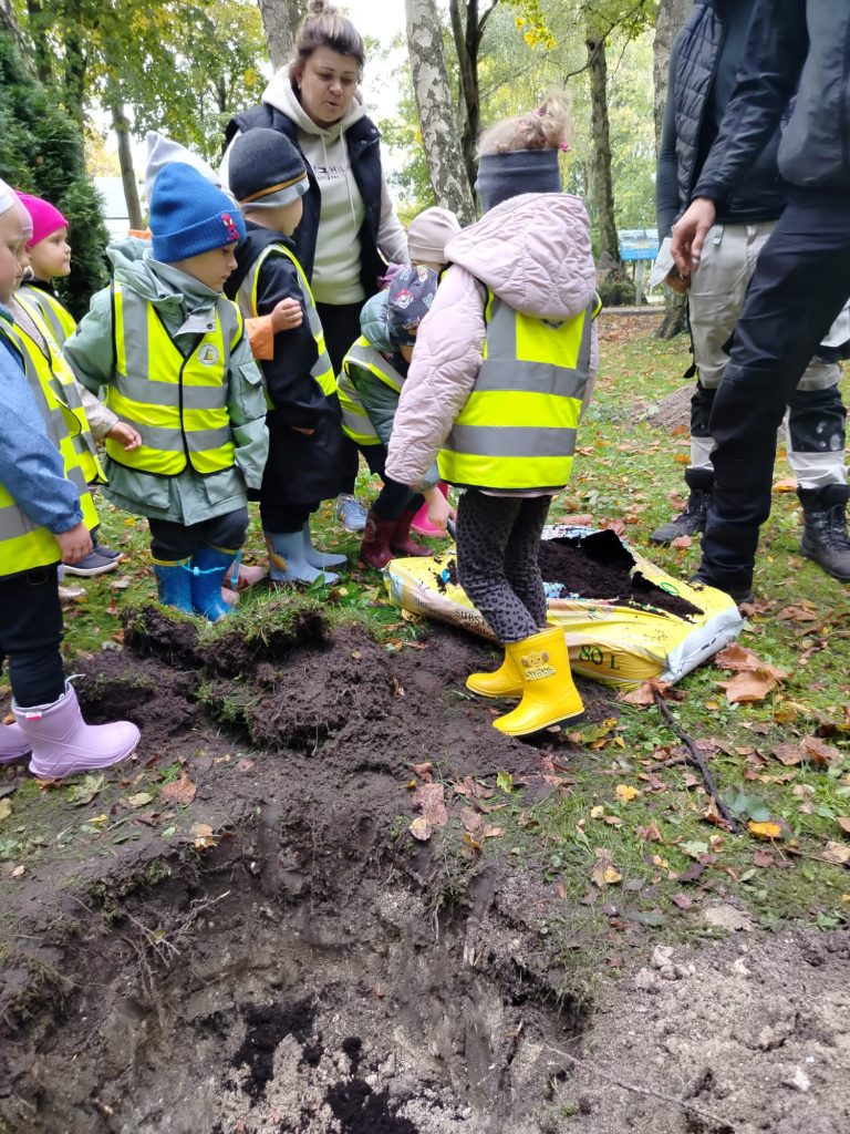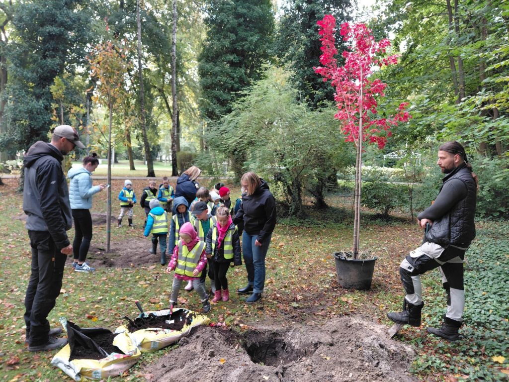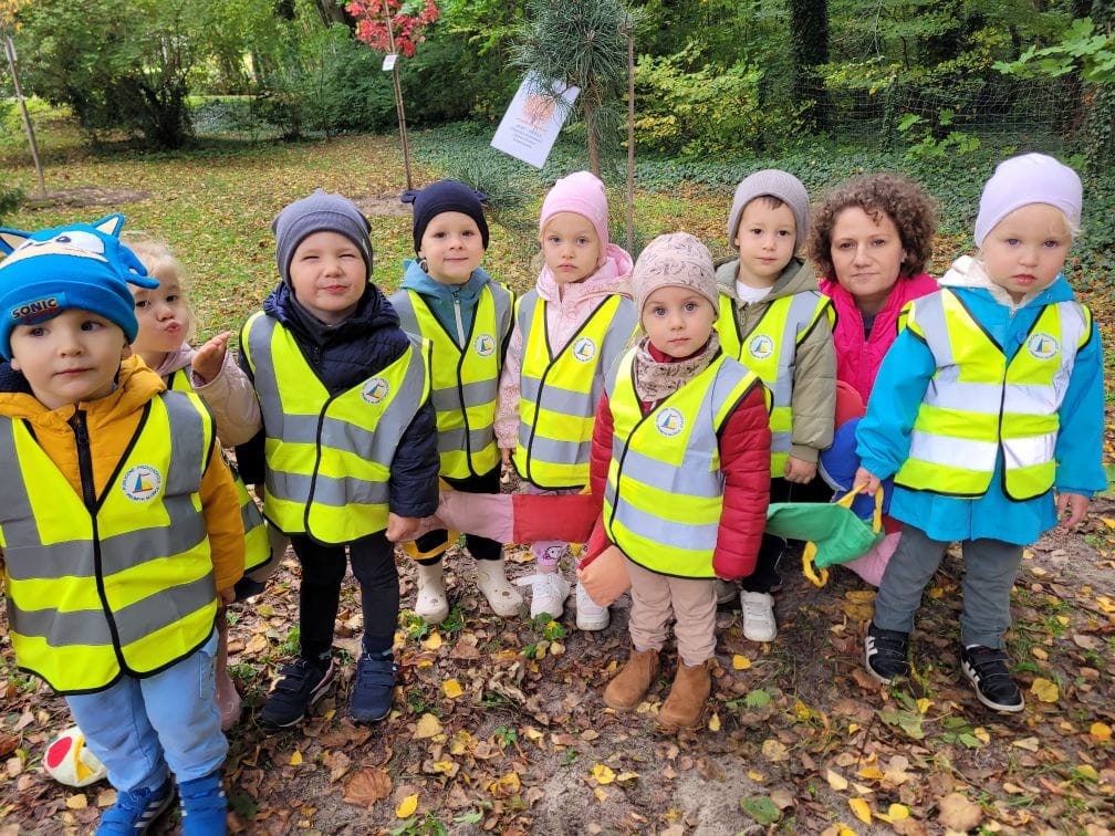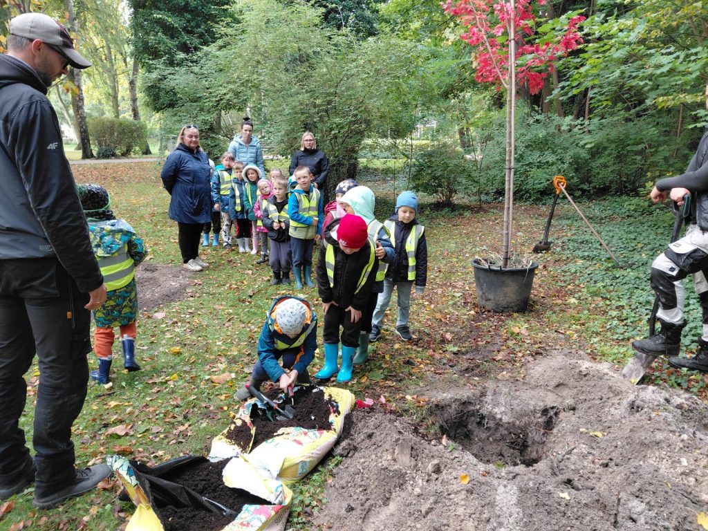 W przeddzień Dnia Drzewa przedszkolaki wraz z kierownikiem Referatu Zieleni Miejskiej i Estetyzacji Gminy Dziwnów Panem Piotrem Roczniakiem i pracownikiem Zieleni Miejskiej Panem Mateuszem Jakuszem, miały okazję sadzenia następujących gatunków drzew w naszym parku:
