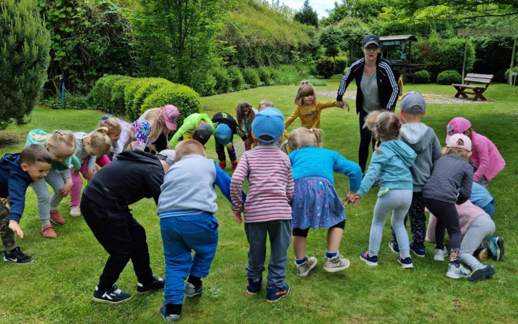 do wskazania sposobu na prowadzenie aktywnego trybu życia i spędzania czasu na świeżym powietrzu. Dodatkowo – ścieżka sensoryczna, w której przejście dzieci bardzo się zaangażowały – jest atrakcją, która wpływa na rozwijanie motoryki dużej, rozwijanie zmysłu równowagi i koordynacji wzrokowo-ruchowej, stymulowanie receptorów znajdujących się w stopach, odczuwanie wrażeń dotykowych, rozwijanie wyobraźni dotykowej, odkrywanie