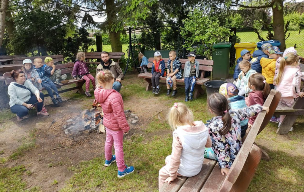 Kolejną niespodzianką był poczęstunek zorganizowany przy ognisku, a dodatkową przyjemnością, z której korzystały dzieci był plac zabaw.