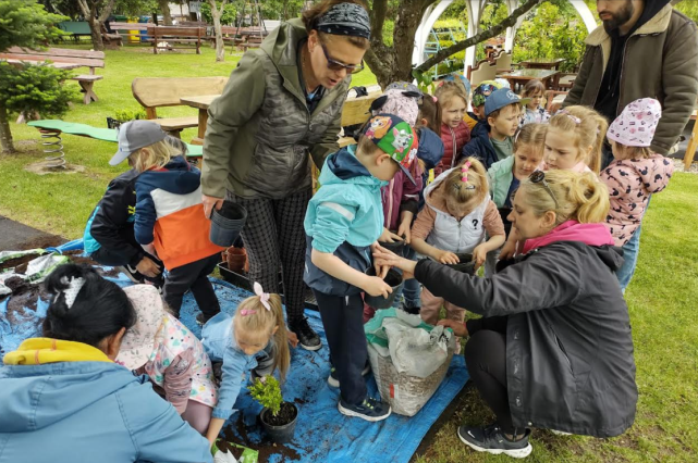 Urozmaiceniem podczas wizyty w szkółce był udział w Warsztatach (dzielnego) Małego Ogrodnika. Dzieci pod kierunkiem instruktora podjęły się prac ogrodniczych związanych z indywidualnym nasadzeniem krzewów bukszpanu, które stały się dla nich pamiątką
