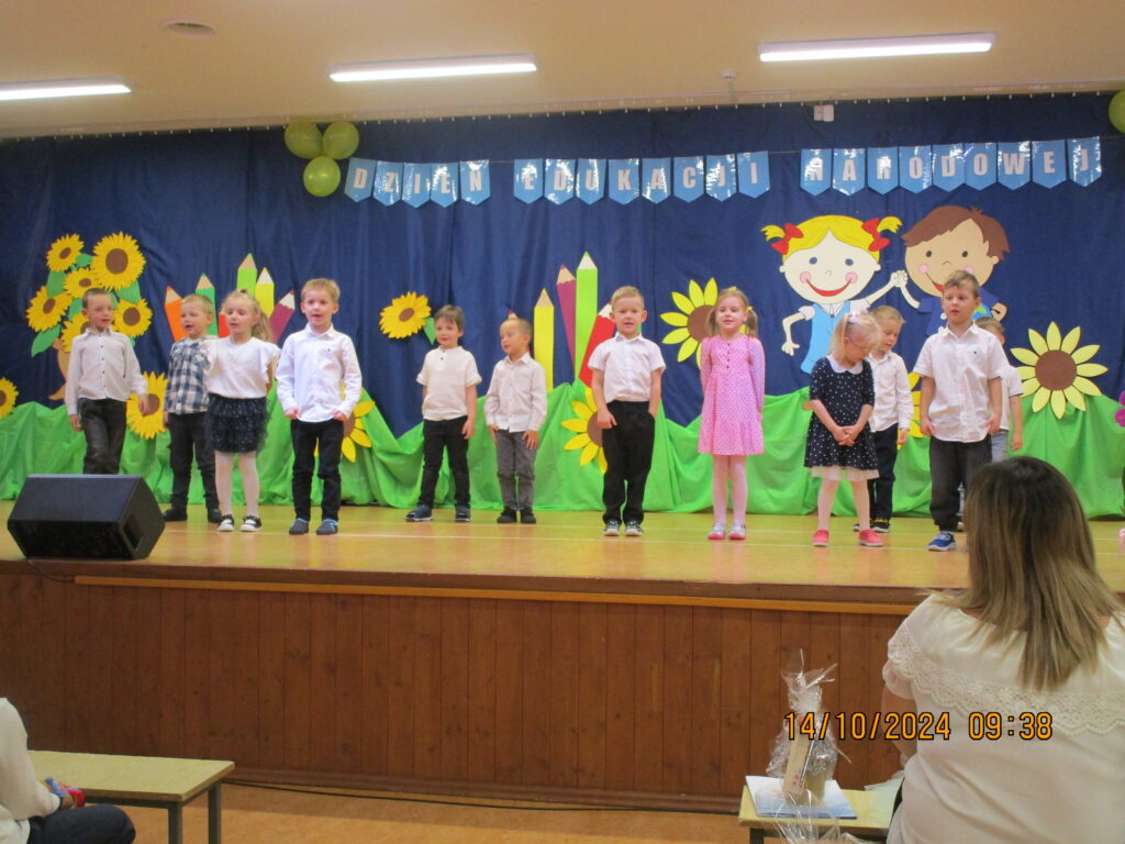 W ten słoneczny, jesienny poniedziałek dzieci poprzez tańce, śpiewy wyraziły płynącą prosto z serca swoją wdzięczność wychowawcom i opiekunom za miłość, serce, opiekę i trud włożony w ich wychowanie i edukację. Wszystkie piosenki zaprezentowane przez „małych artystów” wzbudzały zachwyt i wzruszenie na twarzach zaproszonych gości.