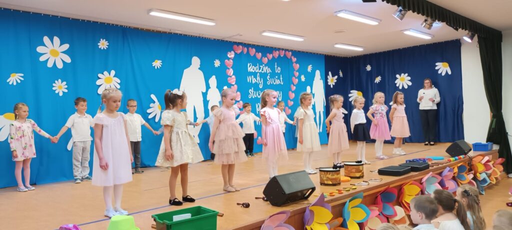 Dzieci w wieku przedszkolnym są żywym przekazem stosunków społecznych panujących w swoich rodzinach. Często bawią się w dom, przyjmują rolę rodziców. Swoimi gestami, zachowaniem i słowami podkreślają ich ważność i mądrość. Dzieci są pełne uczuć, miłości i szacunku do swoich najbliższych. Można w nich doszukiwać się wielu mądrości życiowych, które są przekazywane młodemu pokoleniu. I właśnie ta chęć sprawiania przyjemności swoim najbliższym, okazywania im miłości i przywiązania znalazła swoje odzwierciedlenie w uroczystości jaka odbyła się w Publicznym Przedszkolu „Promyk Słońca” w Dziwnowie w dniu 27 maja 2025 roku.