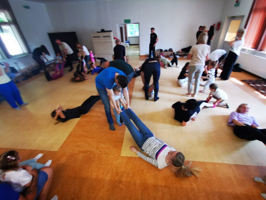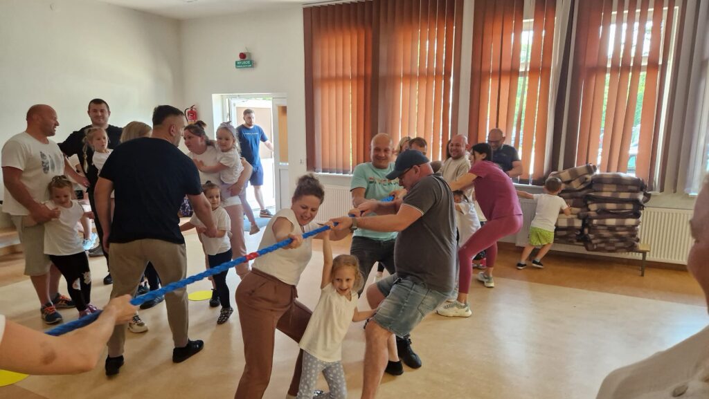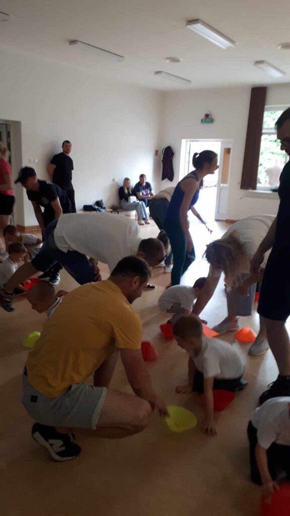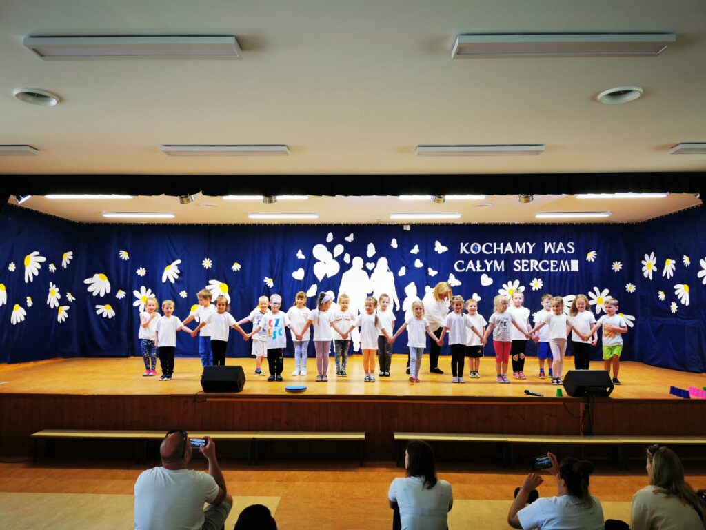 27 maja swoje święto obchodzili rodzice dzieci z grupy „Smerfy”. Uroczystość rozpoczęła się występem artystycznym, w trakcie którego dzieci zaśpiewały piosenki: „Daj mi rękę tato”, „Dam mamie serce”, zatańczyły do utworu „Mama i tato”, wyrecytowały wiersz z pokazywaniem „Kochana mamo, gdy będę duży…” oraz zagrały instrumentację na kubeczkach do utworu Wellerman – cup song – Mad’Hameçon. Po występie przyszła kolej na część sportową, która rozpoczęła się tańcem integracyjnym „Dwóm tańczyć się zachciało”. Potem wszyscy mogli sprawdzić się podczas konkurencji sportowych. Zwieńczeniem uroczystości był poczęstunek przygotowany przez rodziców oraz wręczenie prezentów w postaci papierowych kwiatów w doniczkach dla mam i pucharów dla tatusiów wykonanych przez dzieci
