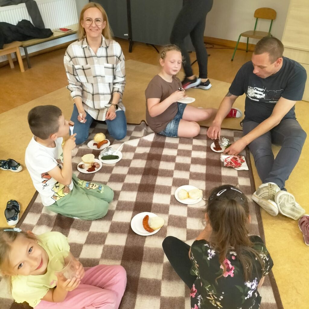 Obchody Dnia Mamy i Taty w naszym przedszkolu świętowano od 23 do 27 maja. W każdej grupie było to spotkanie pełne radości i dobrej zabawy. Jako pierwsza świętowała grupa Tygryski, która 23 maja dla swoich rodziców przygotowała piknik i grilla na placu przy przedszkolu. Niestety kapryśna aura trochę pokrzyżowała plany więc piknik odbył się na kocach w sali widowiskowej. Dzieci przygotowały dla swoich rodziców występ artystyczny oraz własnoręcznie zrobione upominki, a potem wszyscy świetnie się bawili podczas zabaw sportowych i konsumowaniu potraw z grilla.