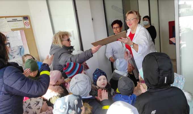 udały się z wizytą do Apteki „Bursztynowej” i Ośrodka Zdrowia w Dziwnowie w celu złożenia życzeń i wręczenia upominków przygotowanych przez dzieci w imieniu wszystkich wychowanków i pracowników Publicznego Przedszkola „Promyk Słońca” w Dziwnowie.