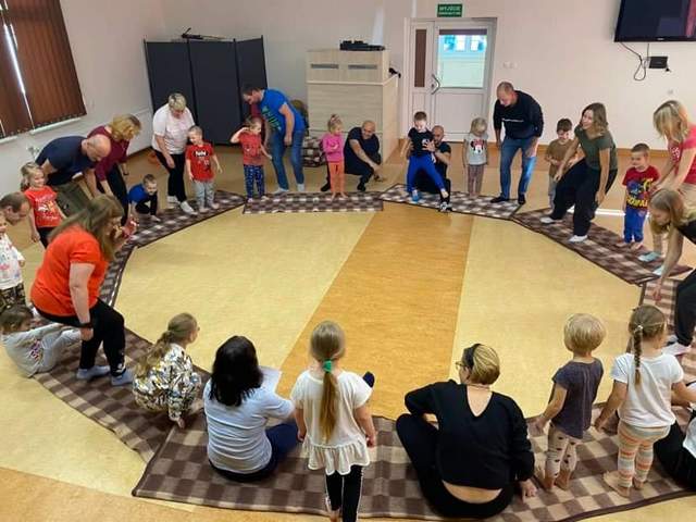 W grupie II „Duszki” dzieci świętowały wspólnie z rodzicami podczas zajęć otwartych według Metody Ruchu Rozwijającego Weroniki Sherborne, które zostały przeprowadzone przez panią Katarzynę Kołakowską na podstawie scenariusza „Przygody nadszedł czas – poszukiwanie skarbu”. Celem zajęć było budowanie przynależności do grupy przedszkolnej, wzmacnianie więzi emocjonalnej między rodzicami i dziećmi, kształtowanie umiejętności nawiązywania kontaktu, współdziałania i partnerstwa, rozwijanie sprawności fizycznej