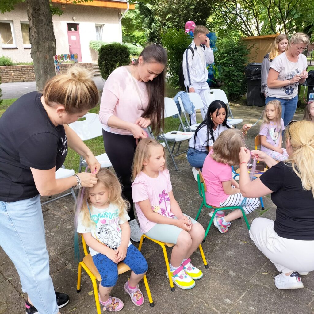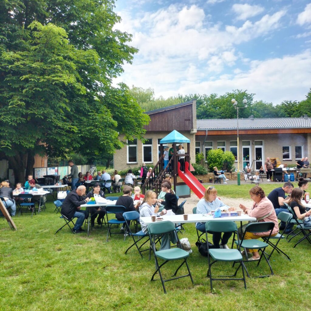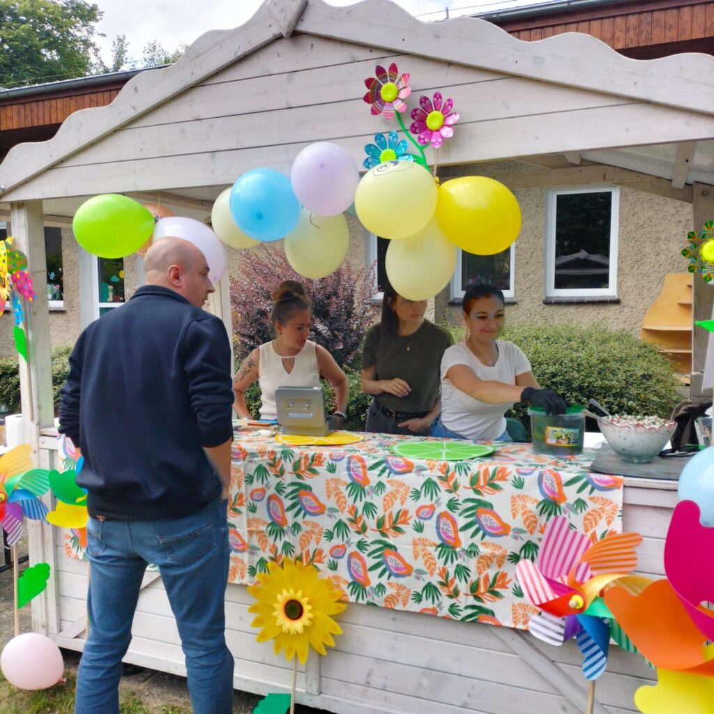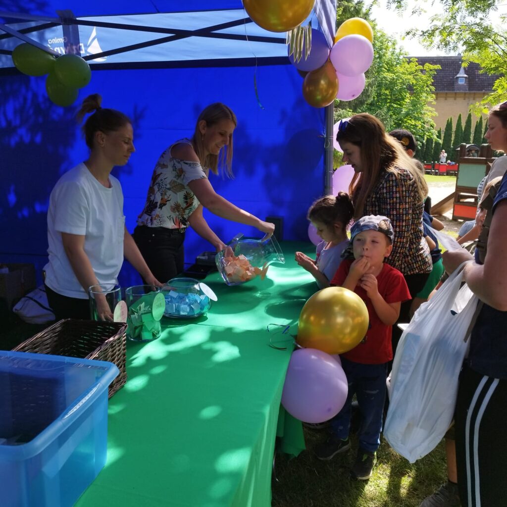 W czwartek 6.06.2024r. odbył się w naszym przedszkolu „Festyn Rodzinny”. Wspólna zabawa w ogrodzie przedszkolnym rozpoczęła się od przywitania wszystkich zebranych gości przez Panią Dyrektor. Na dzieci i rodziców czekały przeróżne atrakcje – warkoczyki, loteryjka fantowa oraz kącik foto. Było też wielkie rodzinne grillowanie , kuchnia polska, bar z napojami, bar sałatkowy oraz słodka kawiarenka. Zabawy dla dzieci prowadził Loczek.