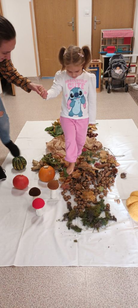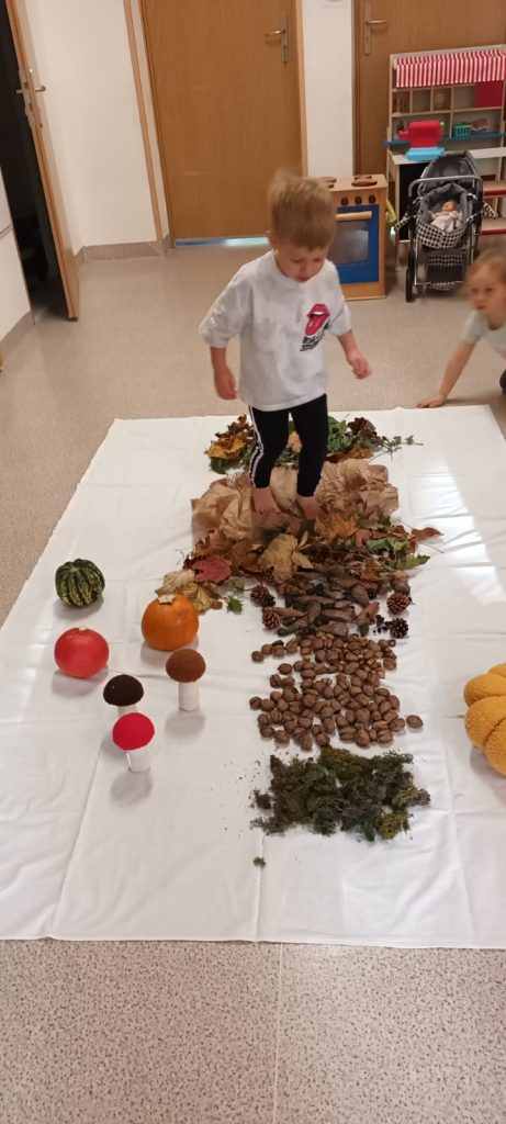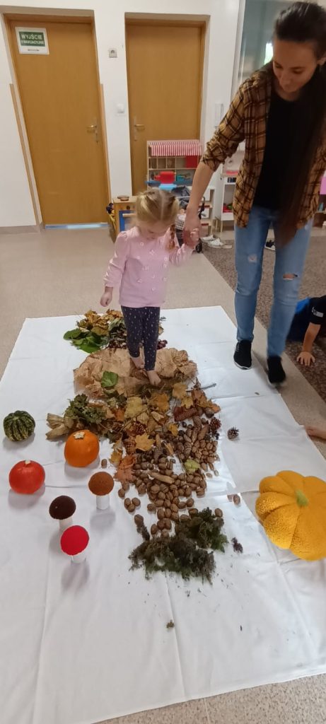 w jesiennych tańcach i zabawach sensorycznych, które rozwijają ich ciekawość przyrodniczą