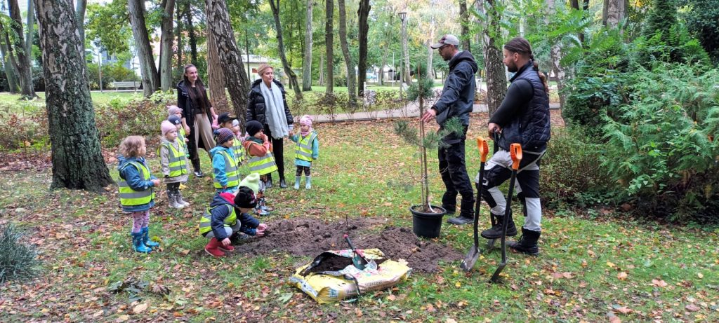 z pracownikami odpowiedzialnymi za zieleń w Dziwnowie posadziły swoją sosnę, którą już następnego dnia szybko poszły odwiedzić