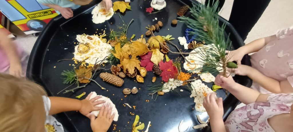 Jesień to okres bogaty w zabawy przyrodnicze i plastyczne, które angażują dzieci w poznawanie darów jesieni – liści, kasztanów, żołędzi, szyszek, orzechów, jarzębiny…
