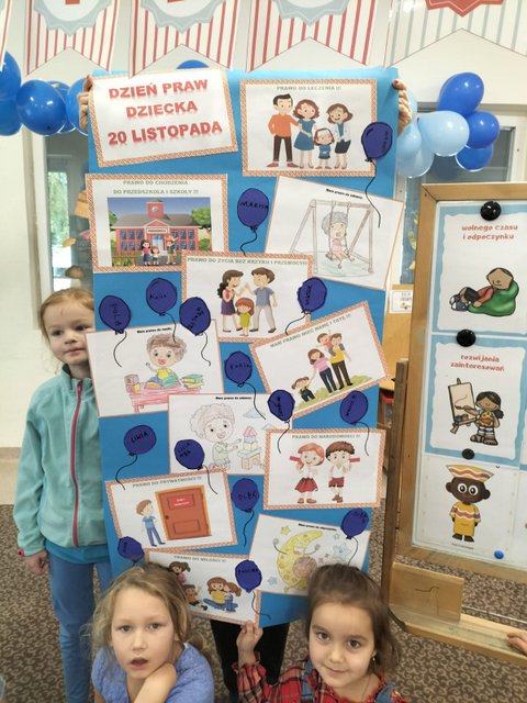 W tym szczególnym dniu wszystkim dzieciom w ich działaniach towarzyszyła piosenka pt. „Prawa dzieci”. Oprawa estetyczna w postaci przygotowanych dekoracji, których elementem były m.in. niebieskie balony podkreślała wyjątkowość tego dnia, podobnie jak prace plastyczne wyeksponowane w formie plakatów oraz dominujący w garderobie dzieci kolor niebieski – symbol solidarności ze wszystkimi dziećmi na świecie.