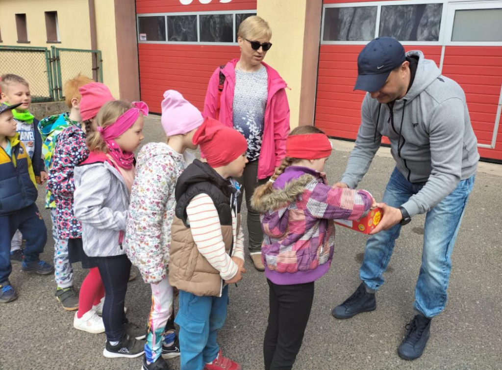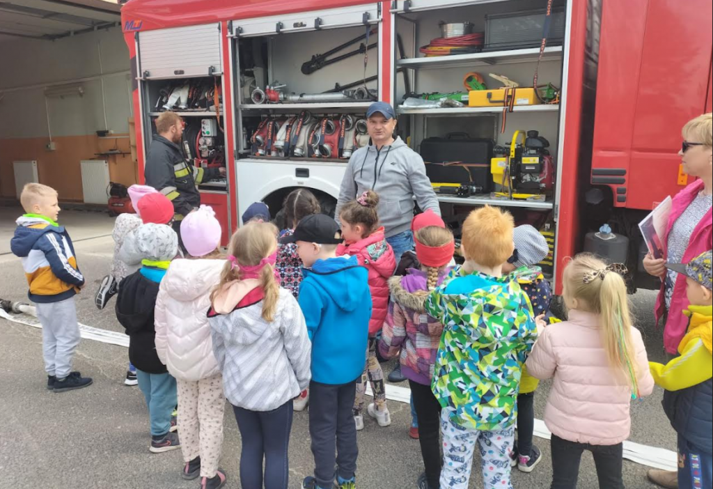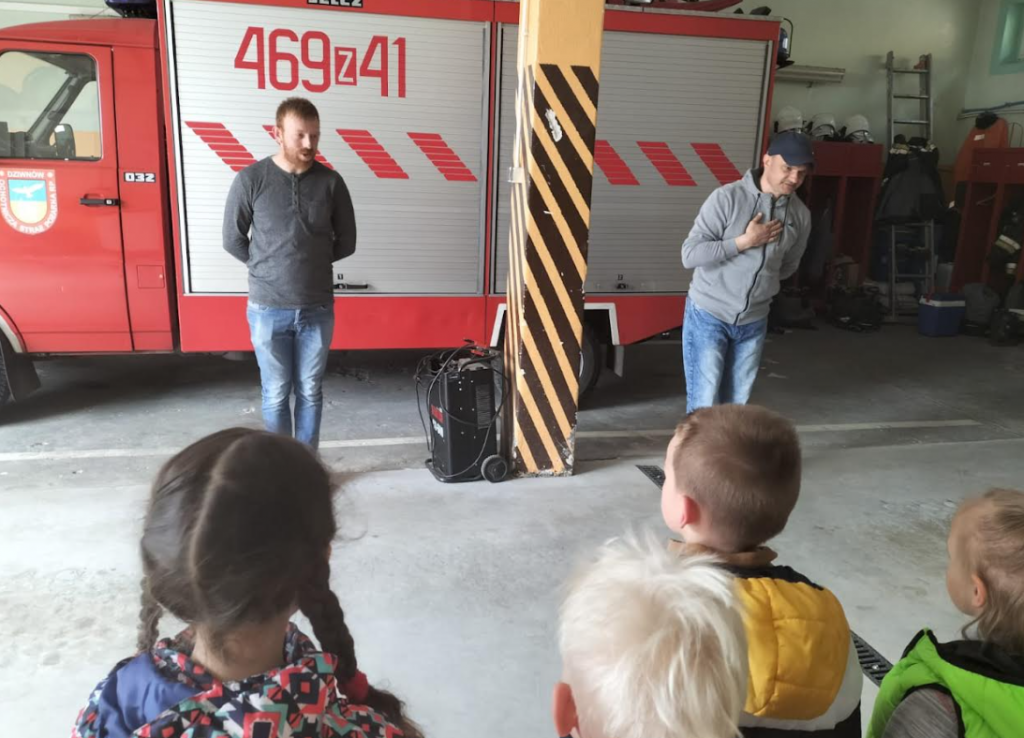 Wizyta w straży pożarnej wzbudziła zainteresowanie dzieci, które w skupieniu słuchały ciekawostek na temat pracy strażaka – opowiadali o tym prezes OSP Robert Janiszewski i strażak Krzysztof Wilczyński. Dzieci dowiedziały się w jakich okolicznościach można wzywać straż pożarną, że strażacy nie tylko gaszą pożary, ale również są wzywani do wypadków i innych zdarzeń. Największą ciekawość wzbudziły wozy strażackie, dzieci z bliska miały możliwość poznać wyposażenie jakim dysponują strażacy podczas swojej ciężkiej i odpowiedzialnej pracy.
