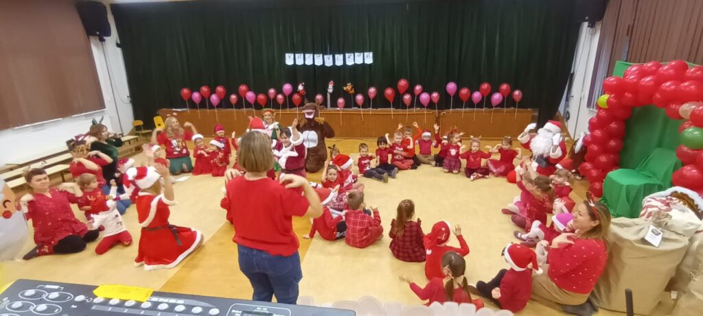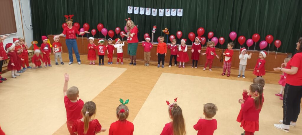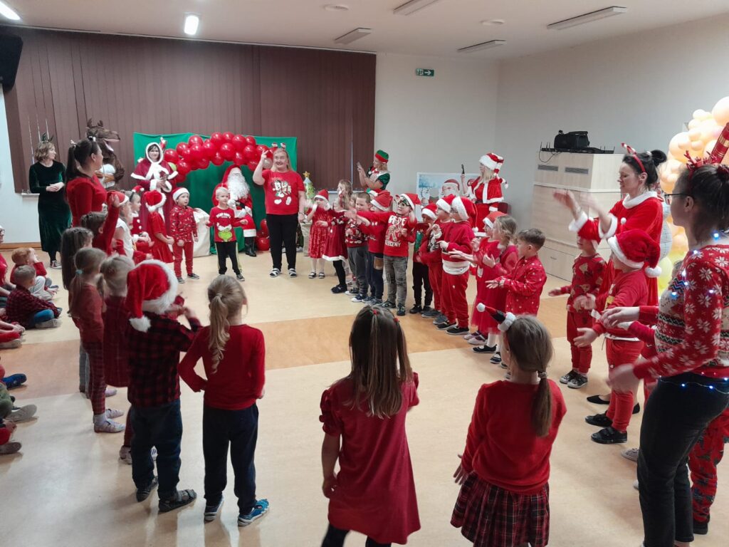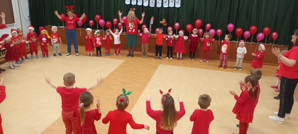 6 grudnia wszystkie przedszkolaki, ubrane na czerwono wypatrywały w Przedszkolu Świętego Mikołaja. Cały ten dzień wypełniły wesołe aktywności, które przeniosły dzieci w magiczny świąteczny nastrój. Były mikołajkowe zagadki, mikołajkowe wiersze oraz mikołajkowe tańce i zabawy, przedszkolaki tańczyły w rytm świątecznych melodii, a ich radość i energia towarzyszyły im przez cały dzień.