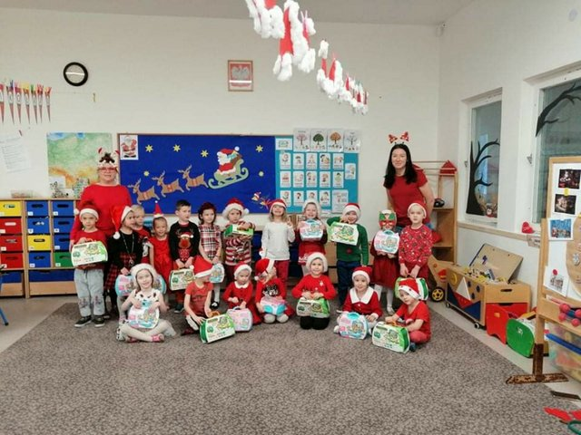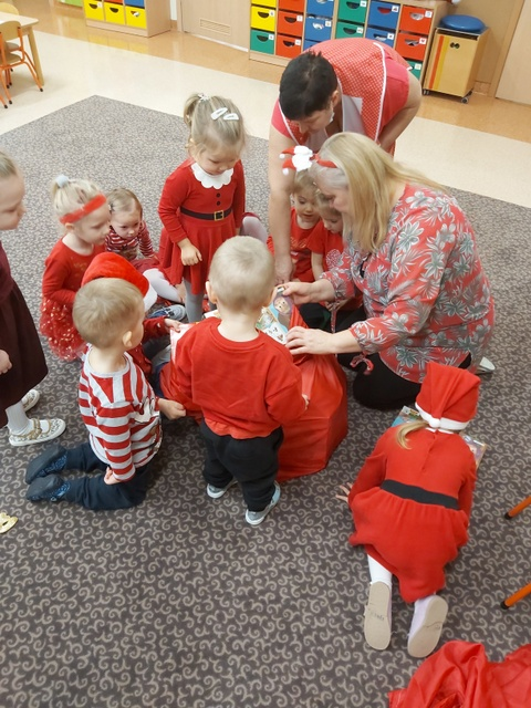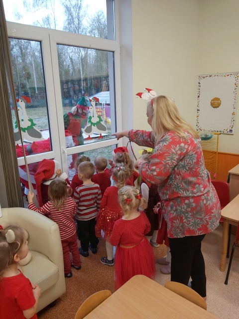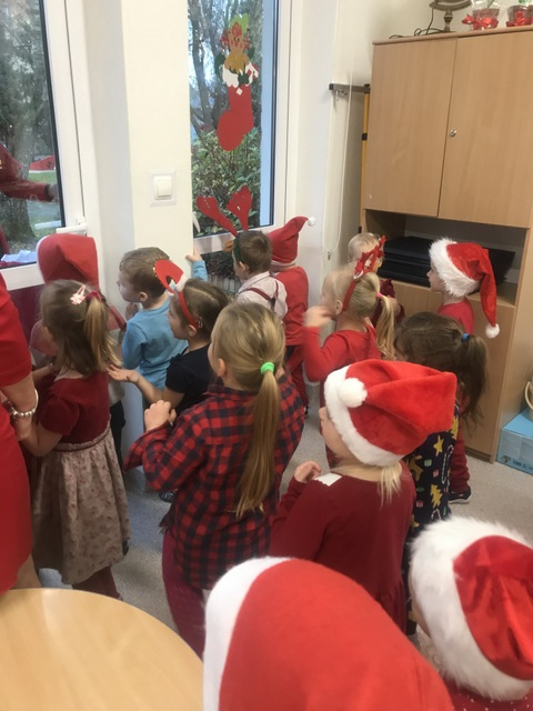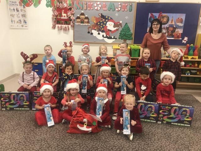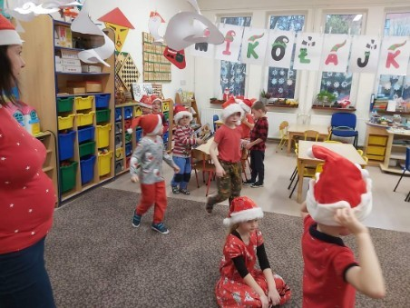 „Pomocnicy św. Mikołaja” to zabawy muzyczno-ruchowe z wykorzystaniem m.in. piosenek „Jedzie Mikołaj samochodem”, „W pracowni Pana Mikołaja”, w które bawiły się dzieci z grupy IV „Tygryski”. Panie Ania, Bożena oraz Jola przygotowały również quiz dotyczący wiedzy o Mikołaju, film o Laponii – domu św. Mikołaja, a także pracę plastyczną ‘Mikołaj”