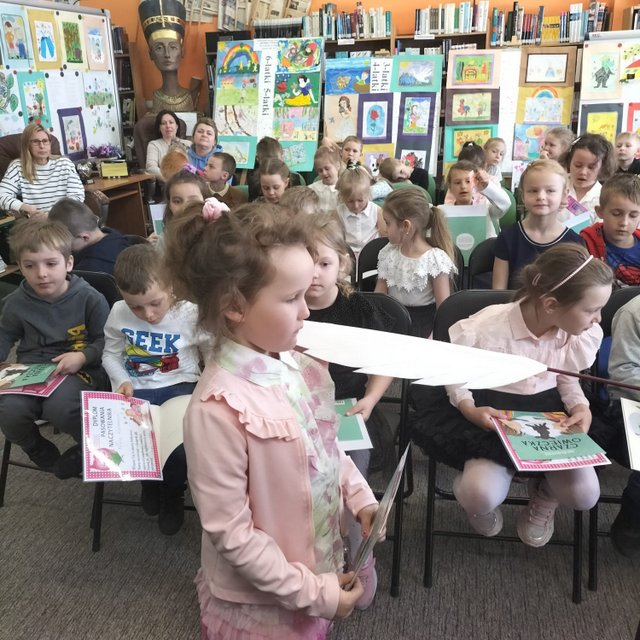 Celem wizyty było nie tylko złożenie życzeń z okazji święta wszystkich Bibliotekarzy ale i Pasowanie na Czytelnika Miejskiej Biblioteki Publicznej im. Elżbiety Zakrzewskiej w Dziwnowie. Pasowane na czytelnika były dzieci, które już opuszczają przedszkole i idą do szkoły podstawowej.