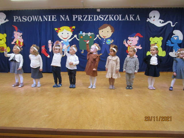 Uroczystość Pasowania na Przedszkolaka w Publicznym Przedszkolu „Promyk Słońca” w Dziwnowie, w grupie V – „Misie” odbyła się 26 listopada 2021 roku. W tym ważnym dniu w pięknie udekorowanej sali widowiskowej, w obecności p. dyrektor Renaty Klimowicz, dzieci zaprezentowały swoje umiejętności recytatorskie, wokalne i taneczne. Swoim radosnym występem udowodniły, że zasługują na przyjęcie w poczet społeczności naszego przedszkola.