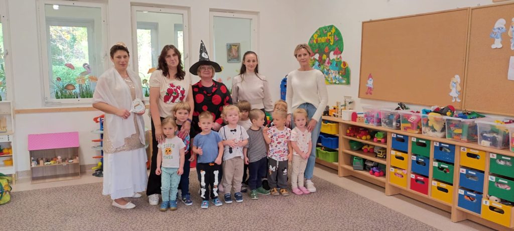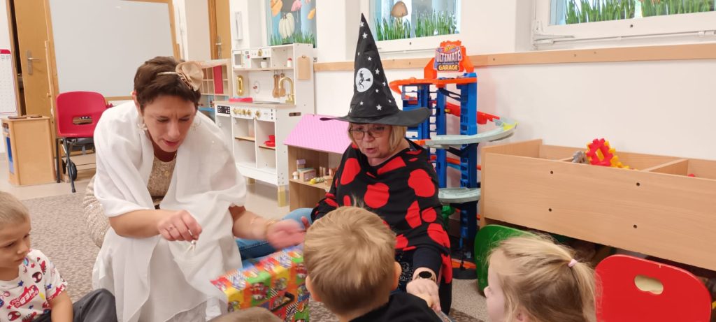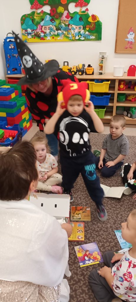 Dnia 13 listopada w tygodniu Bajek i Legend do Grupy Smerfy przyszły Panie z Miejskiej Biblioteki Publicznej w Dziwnowie na lekcję biblioteczną. Pani Małgorzata ( przebrana za Czarownicę ) i Pani Agnieszka ( przebrana za Księżniczkę ) wprowadziły dzieci w Świat Bajek, dzięki któremu dowiedziały się między innymi kto to jest Czerwony Kapturek, Królewna Śnieżka, Jaś i Małgosia…