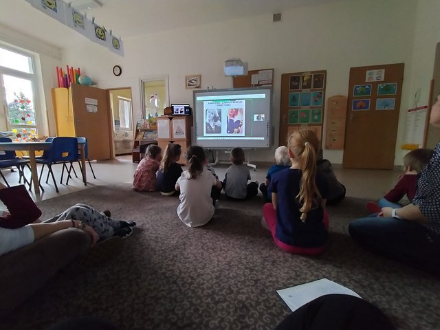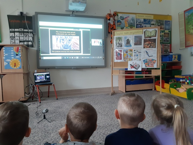 Taką właśnie przygodę miały okazję przeżyć dzieci z grupy III „Gumisie” oraz IV „Tygryski”. W dniach 22 i 23.11.2021 odbyły się spotkania on-line z panią Moniką Sawicką, polską pisarką powieści obyczajowych oraz opowiadań dla dzieci. Spotkania miały charakter edukacyjno-poznawczy o miłości do zwierząt i zawodzie pisarza. Dzieci poznały pracę autora od „kuchni”, dowiedziały się czego potrzebuje autor, aby napisać książkę. Były to kartka, ołówek, komputer, ale najważniejsze pomysł, najlepiej kilka pomysłów. Pani Monika opowiedziała dzieciom historię powstania opowiadań o małym piesku Kajtku. Okazało się, że to historia prawdziwa, a Kajtek mieszka w jej domu. Poznaliśmy również przyjaciół Kajtka, jego współlokatorów. Dzieci bardzo dobrze wiedziały, jak należy opiekować się zwierzętami, że trzeba je karmić, wyprowadzać na spacer, bawić się z nimi dbać o ich higienę i zdrowie. Dzieci dowiedziały się jak powinny zachować się w obecności obcego psa i czego nie powinny robić. Miały okazję nauczyć się bezpiecznej pozycji w razie ataku psa. Przedszkolaki bardzo dobrze sobie poradziły. Na koniec kolorowały ilustracje psów i kotów otrzymane od Pani Moniki, każde dziecko otrzymało również książkę z serii „Kajtuś”