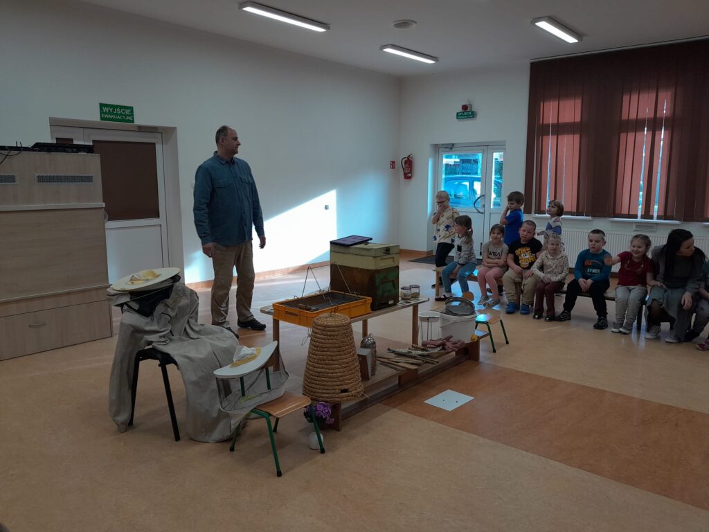 Dzieci zdobyły wiele nowych informacji o życiu tych pracowitych owadów, ich znaczeniu w przyrodzie, o tym, jak powstaje miód oraz o bardzo odpowiedzialnej pracy pszczelarza. Poznały historię pszczelarstwa, jak odróżnić pszczołę od osy, obejrzały strój pszczelarza i przyrządy, których używa w swojej codziennej pracy.