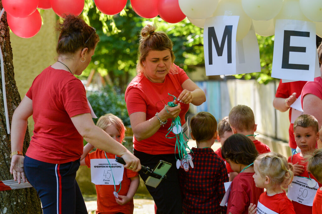 Zdrowe śniadanie, rozgrzewka, biegi po wyznaczonej trasie, ceremonia medalowa – wszystko to stało się udziałem przedszkolaków, pracowników przedszkola oraz pracowników Zespołu Obsługi Oświaty i Kultury, którzy łącznie pokonali dystans 19,8 km i tym samym dołączyli do grona maratończyków.