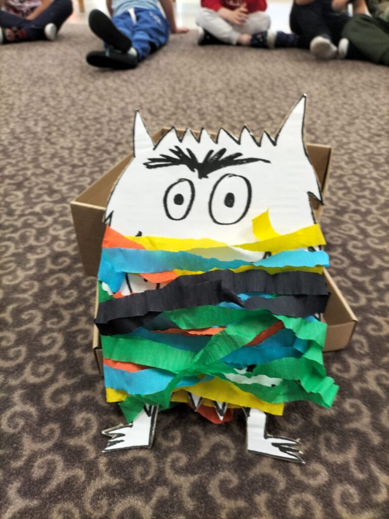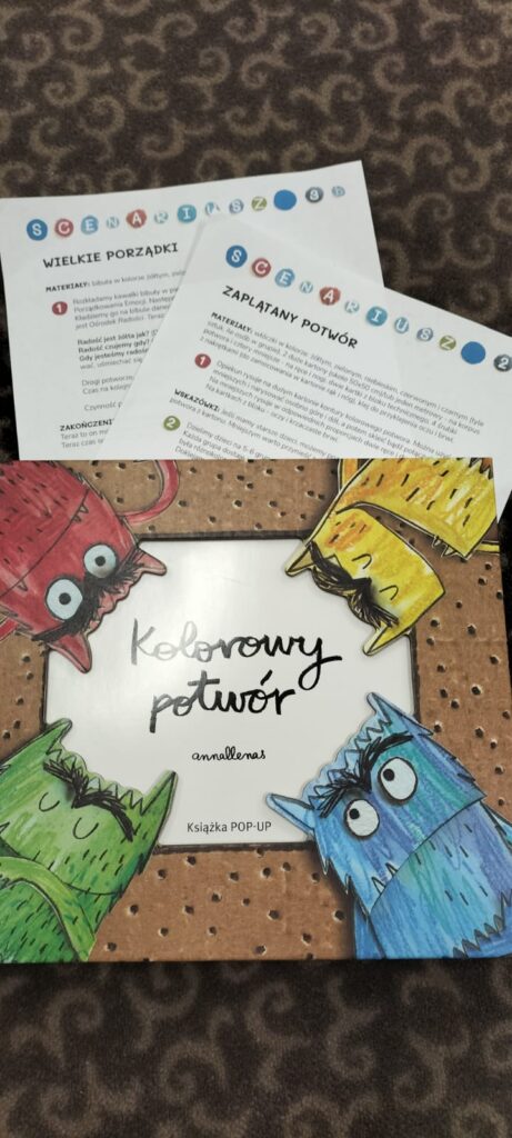 W październiku dzieci z grupy Smerfy wzięły udział w ogólnopolskim programie „Szkoła Emocji Kolorowego Potwora”, którego celem jest dobry i zrównoważony rozwój emocjonalny dzieci, kształtowanie umiejętności nazywania emocji i radzenia sobie ze złością. Zajęcia prowadzone były w oparciu o serię książek „Kolorowy Potwór” autorstwa Anny Lienas. Podczas zajęć przedszkolaki przeżyły niezwykłą i emocjonującą podróż, w której dowiedziały się, że radości i smutki, które towarzyszą nam w życiu codziennym są bardzo ważne. Podczas zajęć dzieci uczyły się rozpoznawać podstawowe emocje, zastanawiały się dlaczego mają taki, a nie inny kolor oraz stworzyły portrety kolorowego potwora. Wspólnie z Panią uporządkowały emocje w sposób wesoły, twórczy i ciekawy. Zajęcia przeprowadziła p. Anita Chudy.