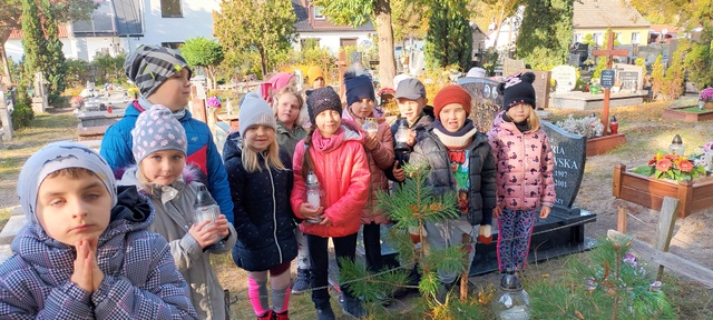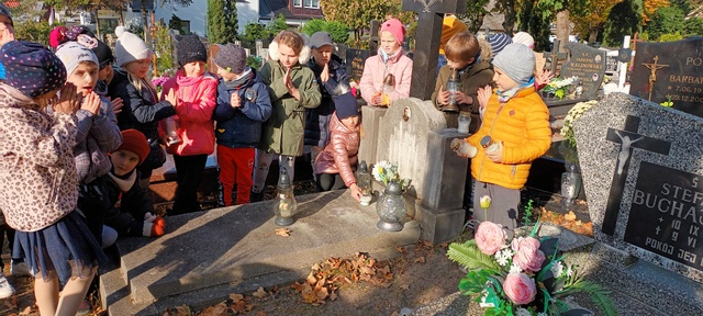 Każdego roku gdy zbliżają się dni, w których sposób szczególny pamiętamy o zmarłych wyruszamy z dziećmi na cmentarz, by tam porządkować groby i zapalić znicze. Zainicjowana akcja zwróciła naszą uwagę, by w tym roku w sposób szczególny wspomnieć ludzi, którzy zapisali się w historii lokalnej społeczności. W tym roku Publiczne Przedszkole „Promyk Słońca” ponownie dołączyło do społeczności placówek oświatowych pielęgnujących pamięć o naszej historii.
