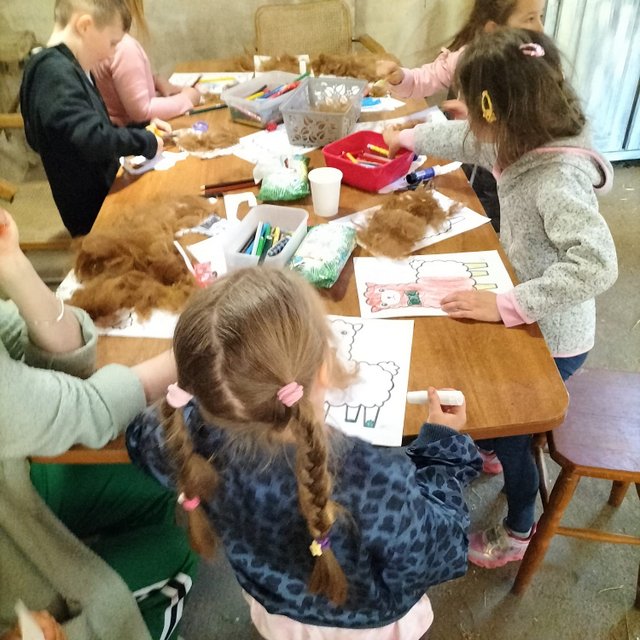 Dzieci po przyjeździe zwiedzały zagrody w których mieszkały zwierzęta. Odwiedziliśmy kury, świnki, królika ale największą atrakcją były….alpaki. Mieszkały w zagrodzie razem z owcami i kozami, można było je głaskać oraz karmić marchewką. W Zagrodzie Edukacyjnej oprócz zwierząt były też inne atrakcje – można było zobaczyć jak wygląda traktor, poskakać