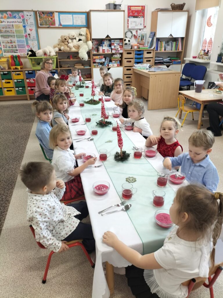 Czas upłynął w bardzo miłej, serdecznej atmosferze. Wszystkie dzieci czuły zbliżające się wielkimi krokami Święta Bożego Narodzenia. Takie podniosłe chwile nie tylko utrwalają dzieciom znajomość tradycji i zwyczajów świątecznych lecz również, co najważniejsze wzmacniają bliskie i serdeczne relacje międzyludzkie.