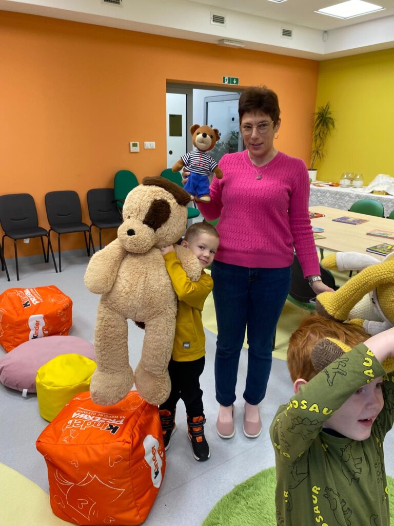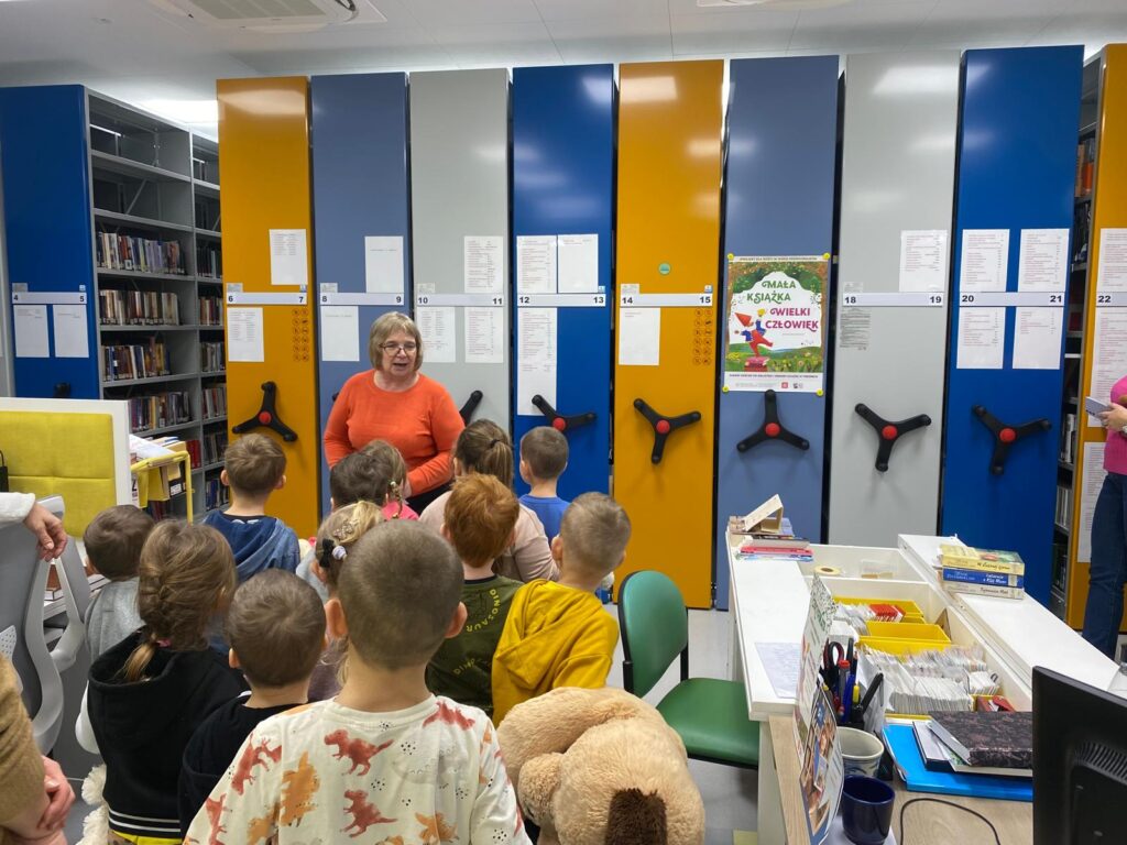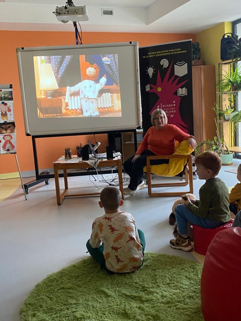 22 listopada dzieci z grupy II „Duszki” wraz z opiekunami odwiedziły Miejską Bibliotekę Publiczną w Dziwnowie. Na miejscu przywitały je panie bibliotekarki Małgorzata Samsonowicz oraz Agnieszka Sawińska. Dla większości dzieci była to pierwsza wizyta w nowej bibliotece, dlatego ważne było, aby dzieci mogły zapoznać się z funkcjonowaniem biblioteki. Zobaczyły pomieszczenia z których mogą korzystać czytelnicy, katalog książek, karty biblioteczne. Następnie windą pojechały na górę, gdzie dzieci aktywnie spędziły czas. Poznały Misia Uszatka, który przyjechał prosto z Łodzi, zatańczyły do piosenki „Witajcie w naszej bajce”, przeliczały misie, które zabrały ze sobą do biblioteki oraz obejrzały przygody Misia Uszatka. Na zakończenie pięknie pokolorowały ilustracje misia, które zabrały do przedszkola. Nie zapomniały także o wypożyczeniu książki. Tym razem są to opowiadania o Misiu Uszatku. Paniom bibliotekarkom dziękujemy za pouczające i ciekawe zajęcia.