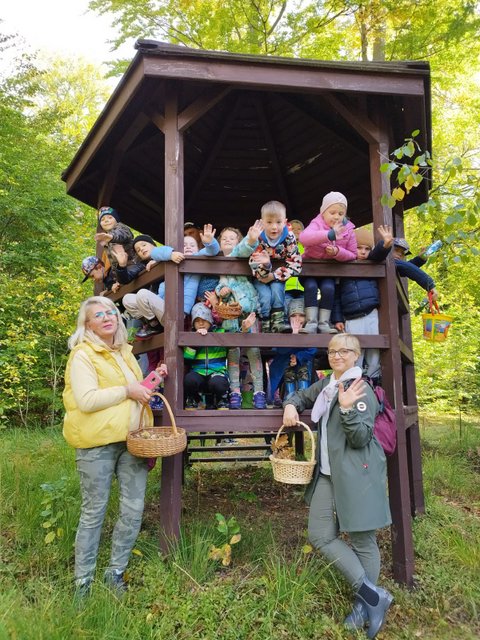 W dniu 04 października Gumisie wraz z chętnymi rodzicami, panią Magdą Sową oraz Magdą Podolską pojechały do Nadleśnictwa Rokita , leśniczówka w Golczewie na spotkanie z panami ze służby leśnej. Pan Rafał Pajestka oprowadził nas po lesie, opowiadał mnóstwo ciekawych historii, pokazał wiele ciekawych przyrodniczych skarbów. Atrakcją było zbieranie grzybów. I choć pani Magda drżała o wszystkich, by nikt się nie zgubił, wszyscy pilnowali się pana Rafała i na jego głos stawiali się w komplecie na okresowych zbiórkach. Nikt z lasu nie wyszedł z pustym koszykiem, niektórzy to nawet mieli grzyby w torbach