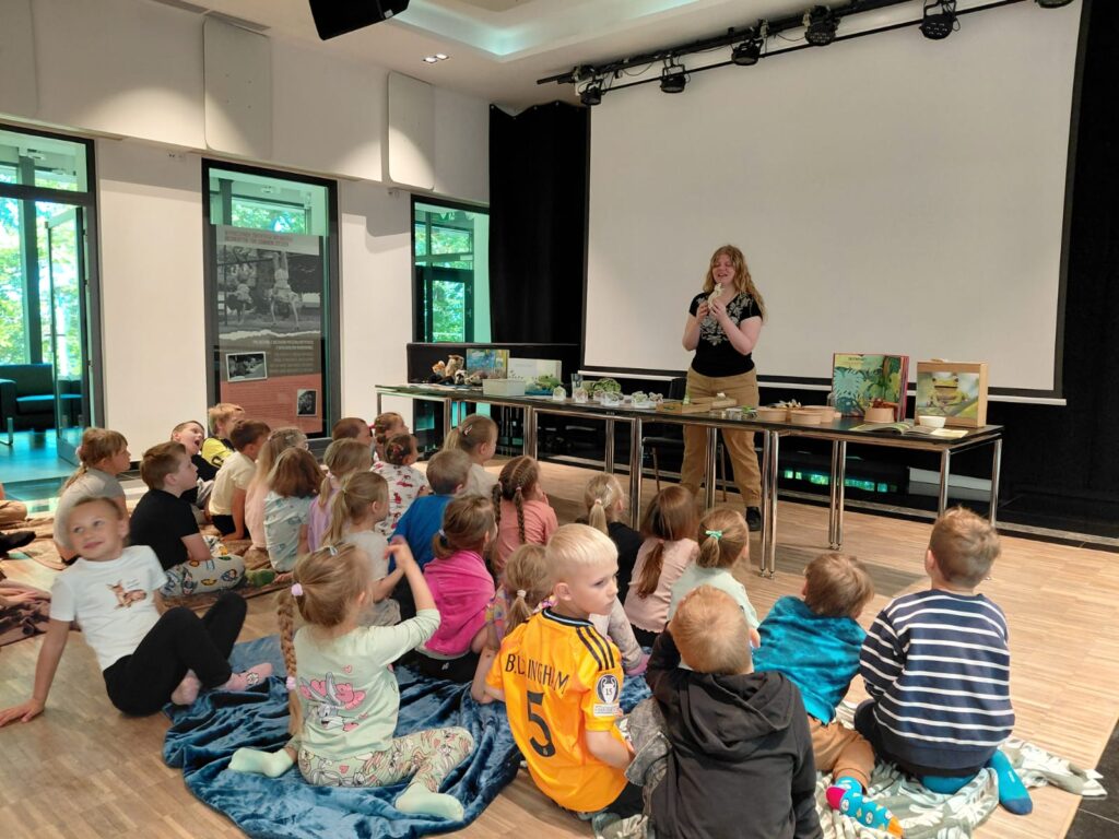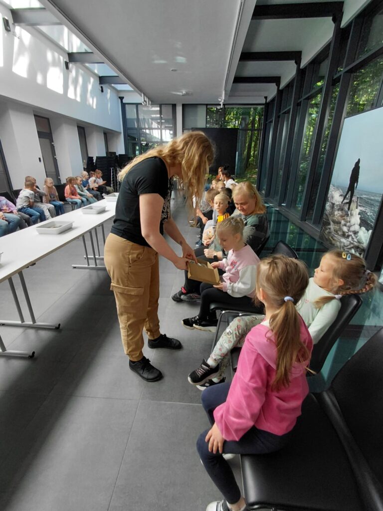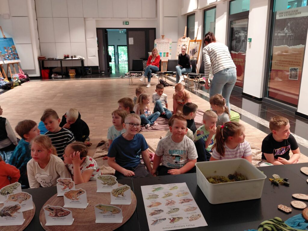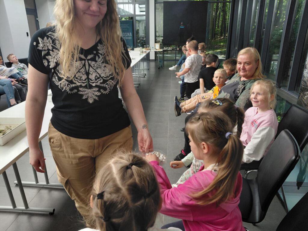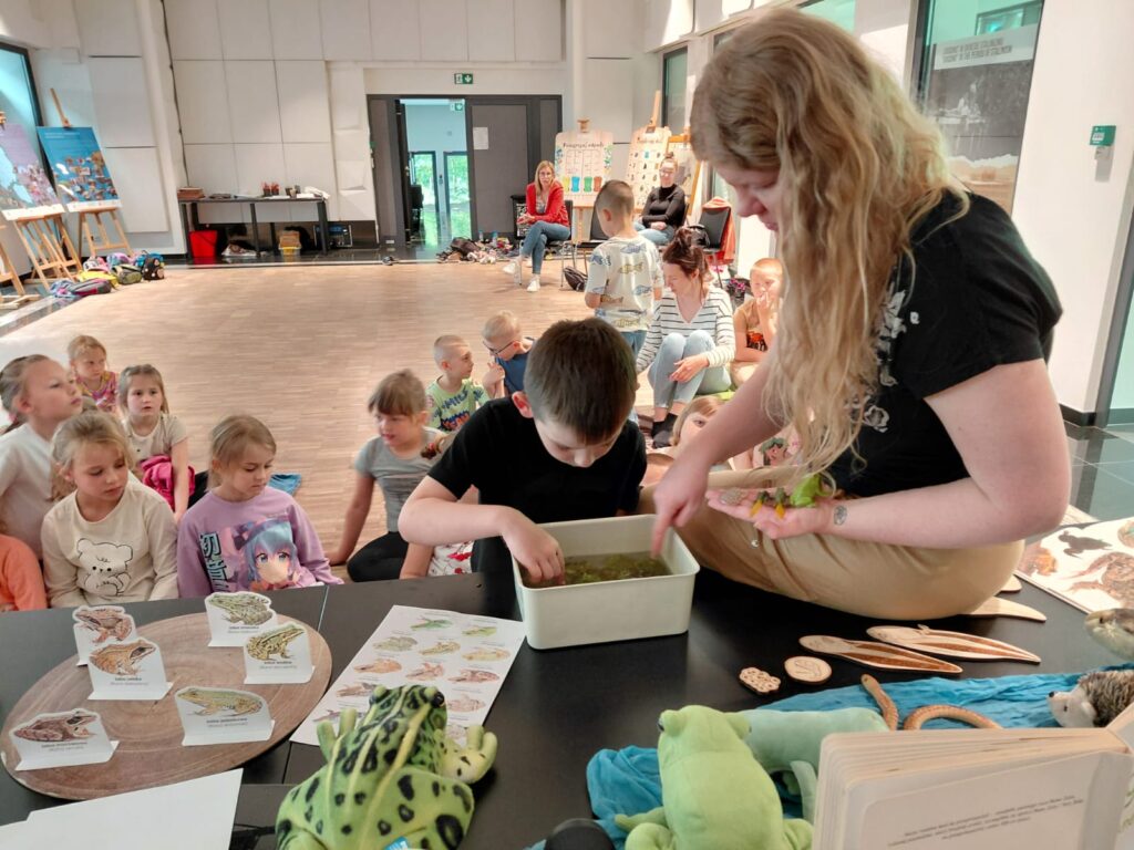 Przedszkolaki z uwagą wysłuchały przyrodniczych opowieści, wysłuchały odgłosów zwierząt żyjących w stawie. Na koniec spotkania dzieci wręczyły Pani Klaudii własnoręcznie wykonaną laurkę. Dziękujemy za przeniesienie nas w fascynujący świat natury. Słuchanie tych niezwykłych opowieści sprawia, że chcemy nieustannie poznawać i przebywać w świecie niezwykłej przyrody.