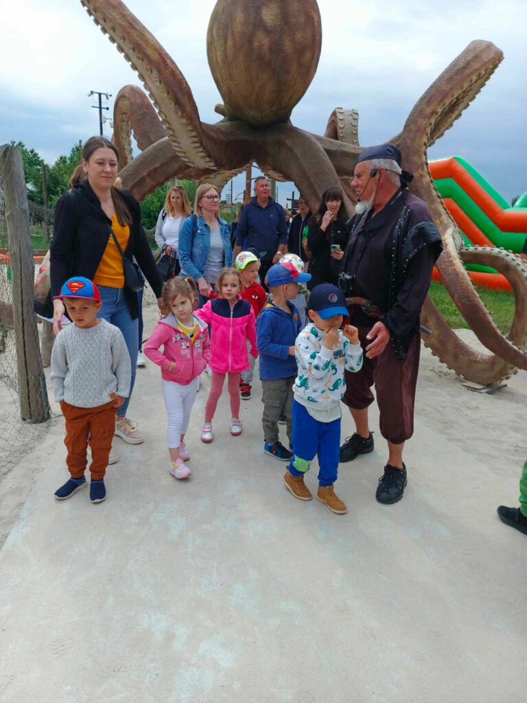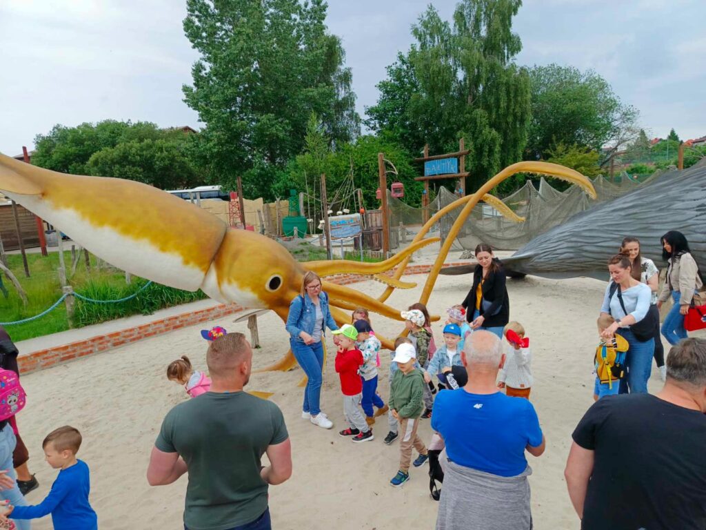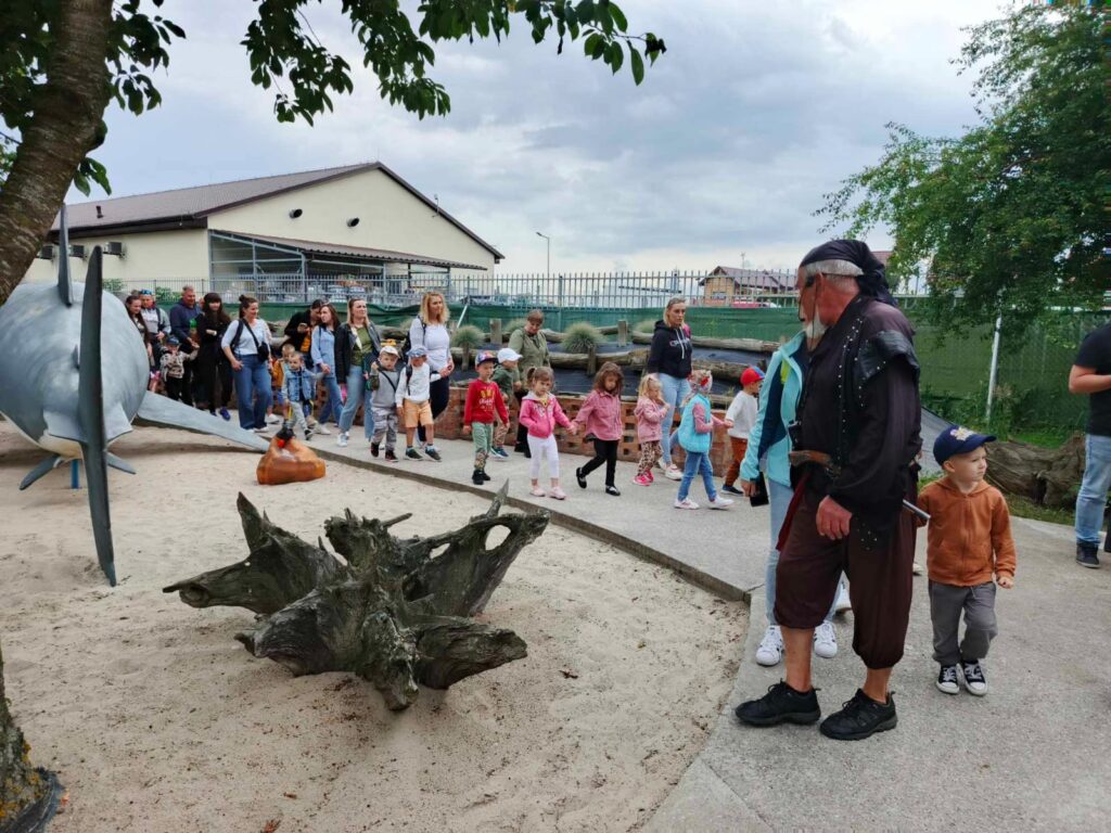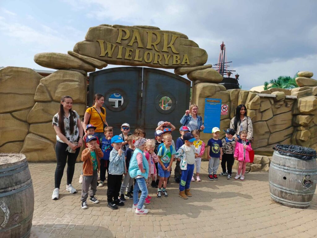 Dnia 07 czerwca 2024 roku, w ramach obchodów Międzynarodowego Dnia Dziecka, przedszkolaki z grupy I „Smerfy” wraz z rodzicami oraz opiekunami z grupy wybrały się na wycieczkę autokarową do Parku Wieloryba w Rewalu. To jedyne w okolicy miejsce, gdzie jednocześnie bawiąc się i ucząc można dowiedzieć się wiele na temat mieszkańców mórz i oceanów. Wycieczka rozpoczęła się od zwiedzania sekcji znajdujących się w parku pod czujnym okiem przewodnika pirata. Dzieci mogły zobaczyć naturalnej wielkości mieszkańców mórz i oceanów, poznały ich wygląd, zwyczaje i dowiedziały się wielu ciekawostek.