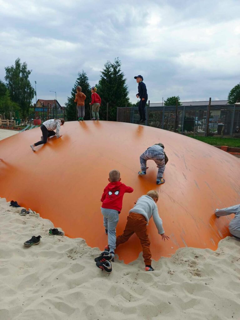 Po przejściu ścieżki edukacyjnej ruszyły na plac zabaw, gdzie odkrywały zakamarki statku pirackiego oraz dmuchanego zamku. Wiele radości sprawiły im także podskoki na dmuchanej poduszce, bujanie na huśtawce, karmienie papug oraz poszukiwanie zaginionego skarbu na Wyspie Skarbów. Dzień spędzony w parku bez wątpienia był wielką przygodą. Do przedszkola wróciliśmy zmęczeni, ale szczęśliwi.