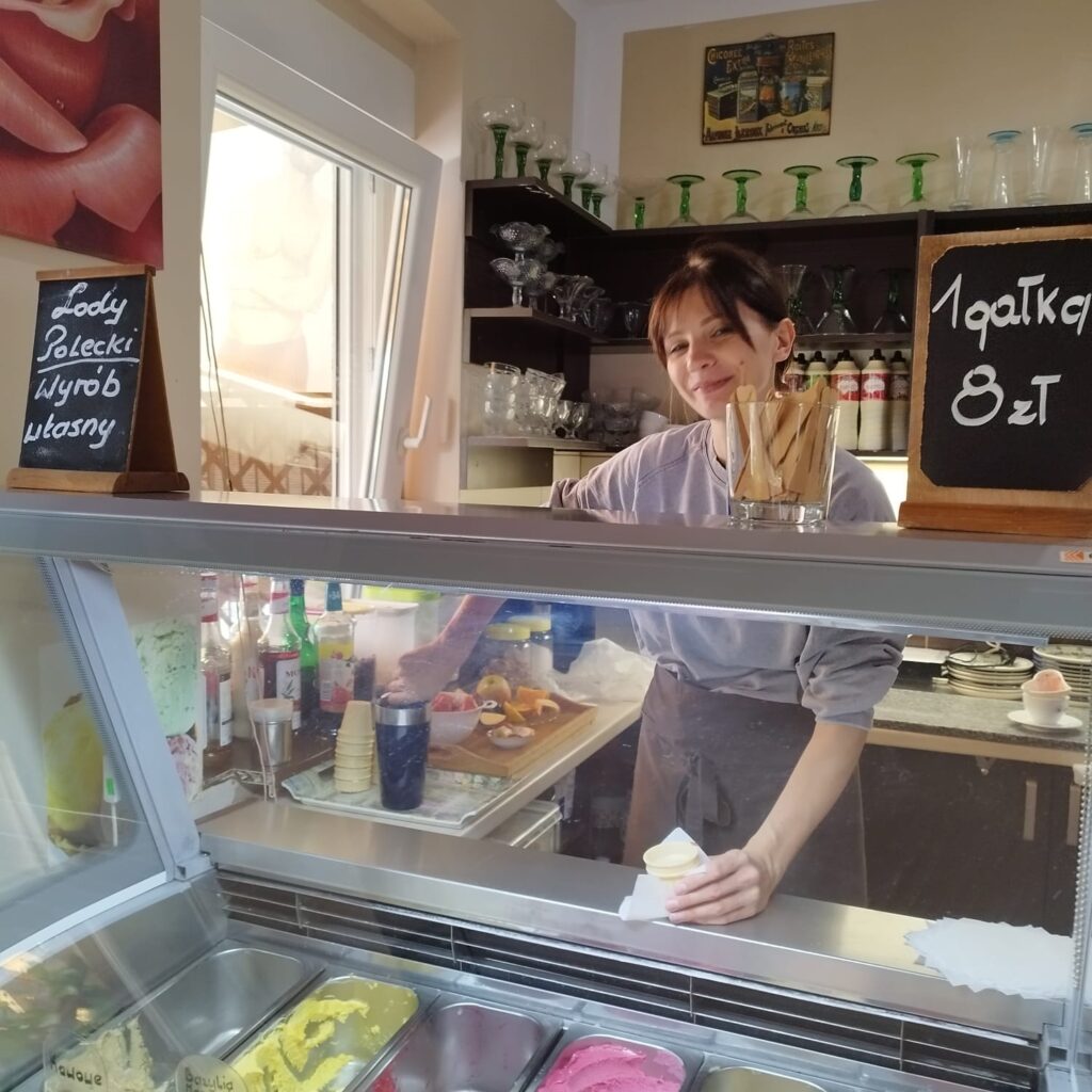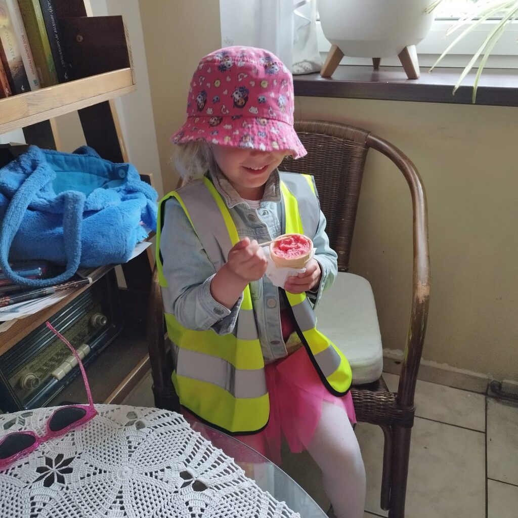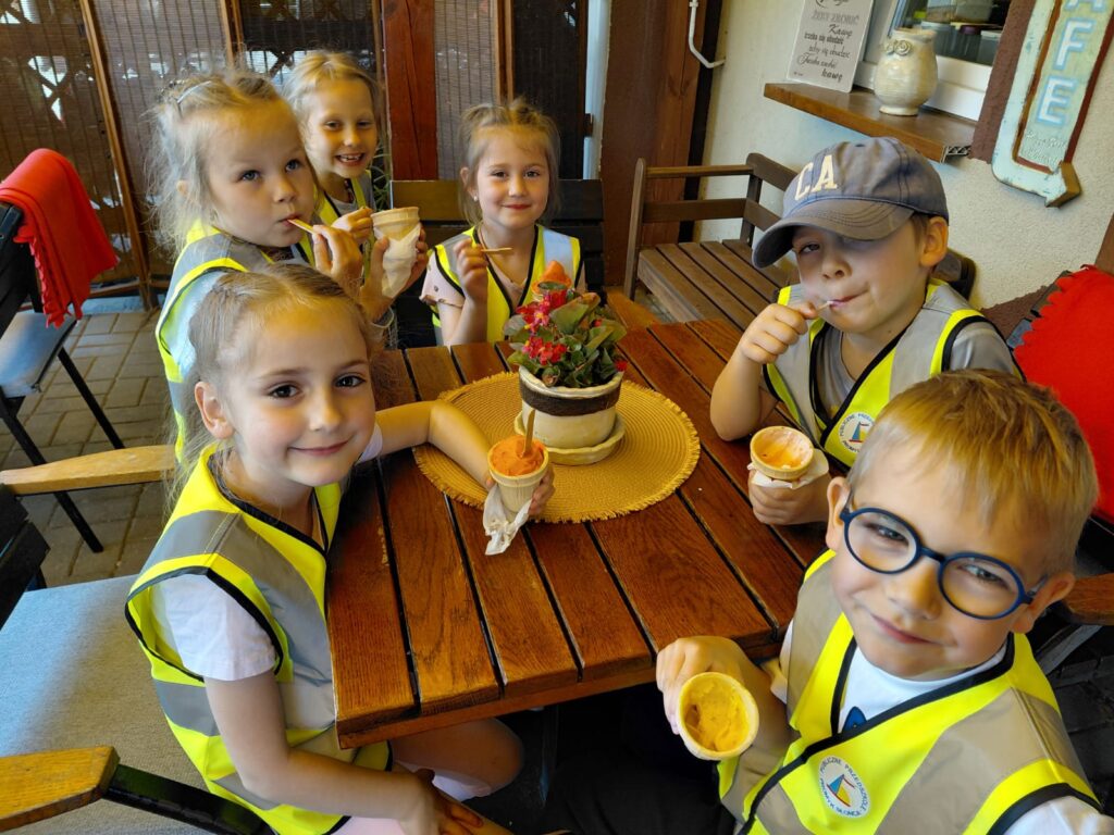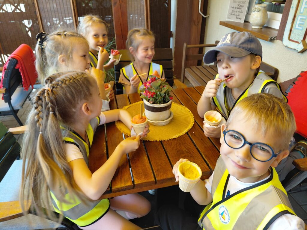 Przy okazji wyjścia utrwaliliśmy zasady zachowania w miejscach publicznych oraz ćwiczenie samodzielności. Każde dziecko mogło dokonać wyboru w kwestii smaku swojego loda. Było pysznie, było smakowicie, było wesoło. Na koniec wizyty dzieci podziękowały pani Weronice i pani Renacie za pyszny deser. Dziękujemy za miło spędzony czas.