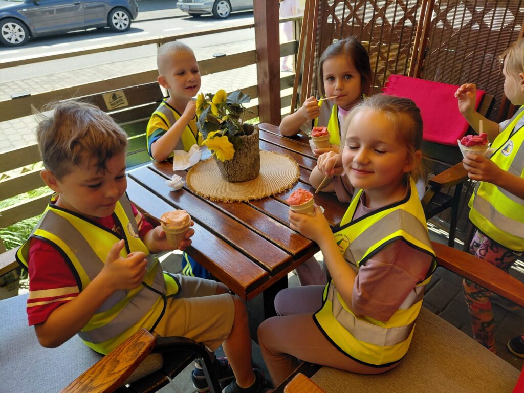 02 czerwca z okazji Dnia Dziecka ,dzieci z grupy I wraz z paniami wybrały się na lody do kawiarni „Cafe Rosa” pani Poleckiej. Z kolei 03 czerwca udały się tam dzieci z grupy III.