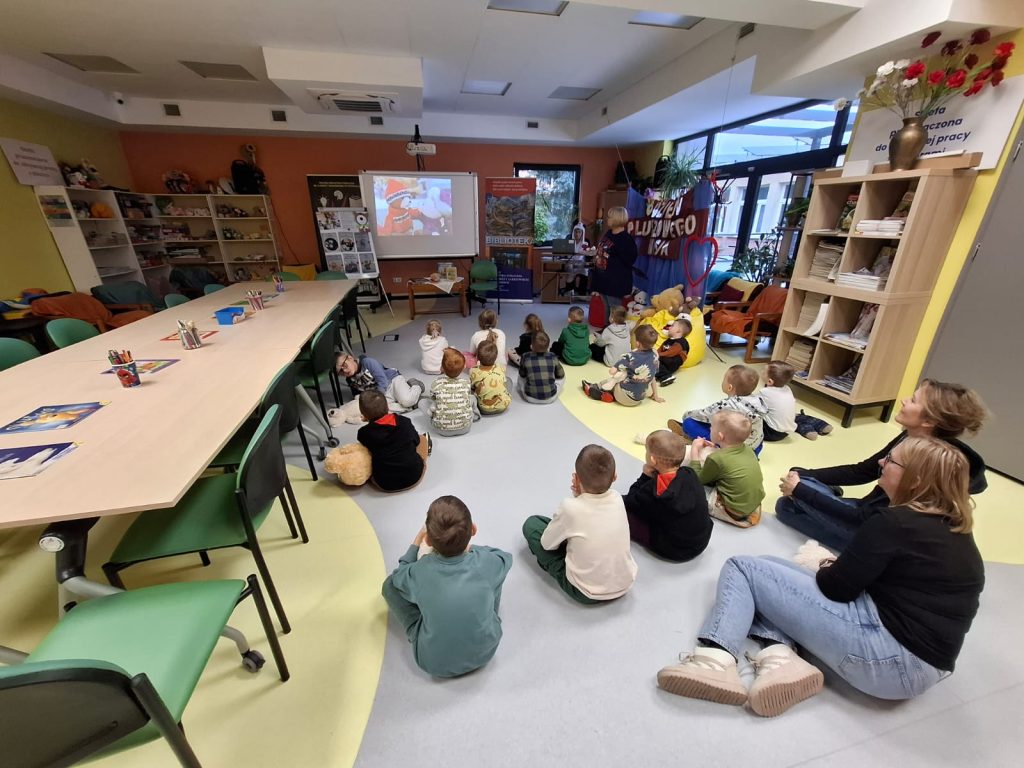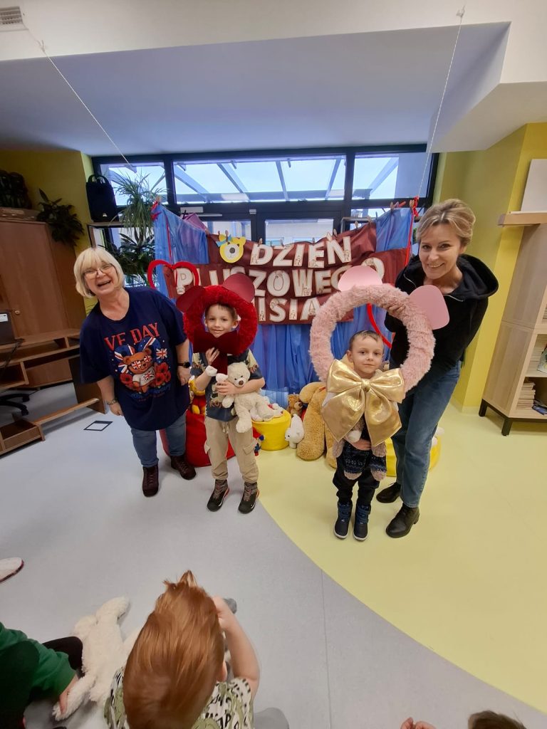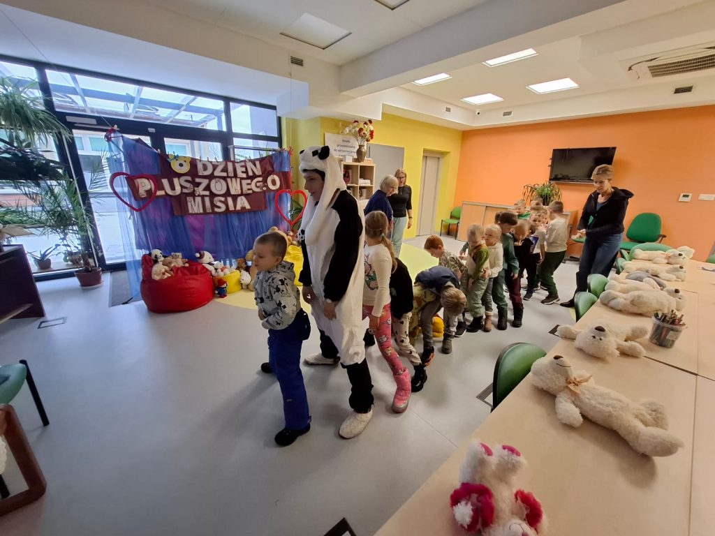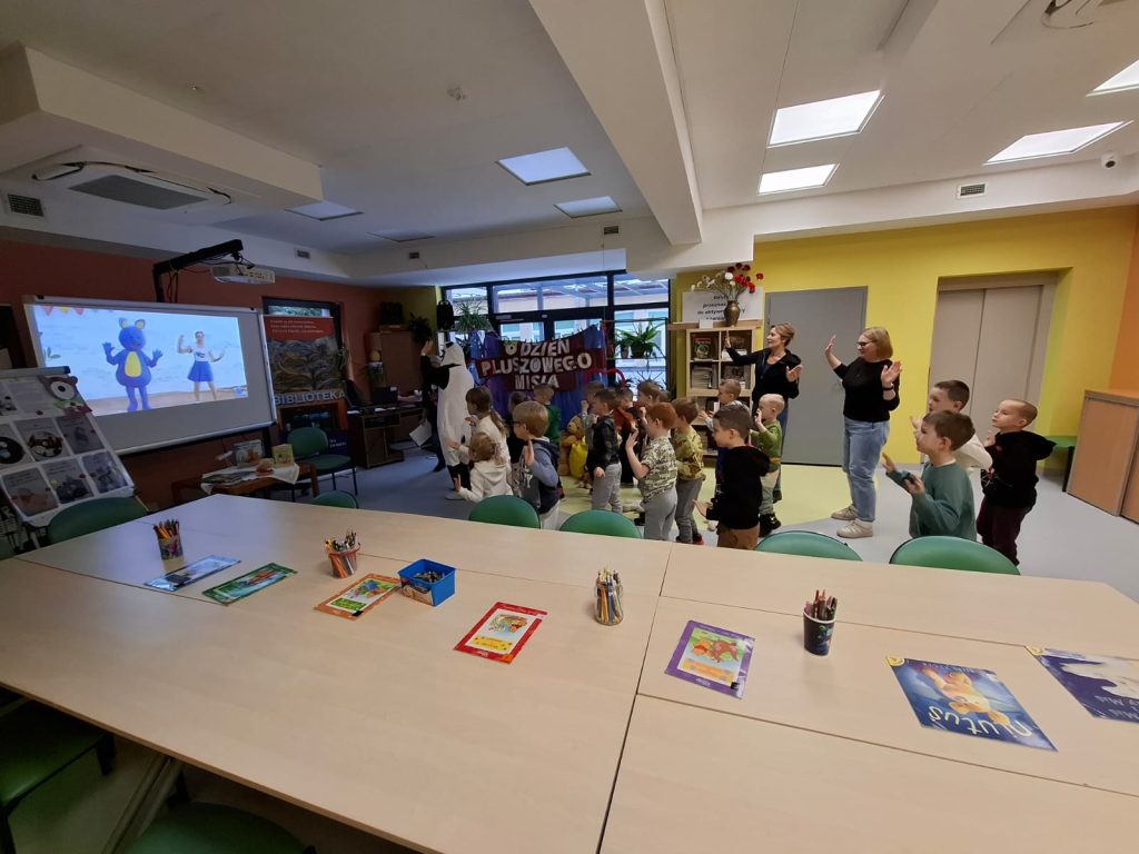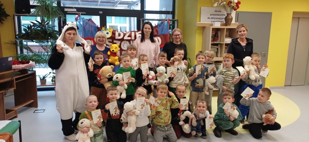 Dnia 25 listopada dzieci z grupy „Tygryski” wraz z paniami i swoimi pluszowymi misiami udały się do Miejskiej Biblioteki Publicznej w Dziwnowie na zajęcia z okazji Dnia Pluszowego Misia. Na wejściu zostaliśmy powitani wierszem przez młodszą bibliotekarz Małgorzatę Samsonowicz oraz młodszą bibliotekarz Agnieszkę Sawińską – przebraną w strój misia pandy. Świętowanie rozpoczęliśmy od misiowej gimnastyki i tańca, po czym wysłuchaliśmy krótkiej historii o tym, skąd wziął się pierwszy pluszowy miś. Tygryski wykazały się również ogromną wiedzą na temat misiowych bohaterów z bajek, wysłuchały znane i mniej znane piosenki z misiowych bajek oraz z zainteresowaniem obejrzały Misia Uszatka. Na zakończenie spotkania wszystkie Tygryski wzięły udział w misiowej przysiędze, po której otrzymały pamiątkowy dyplom i obiecały, że na pewno jeszcze odwiedzą bibliotekę i wypożyczą niejedną książkę.